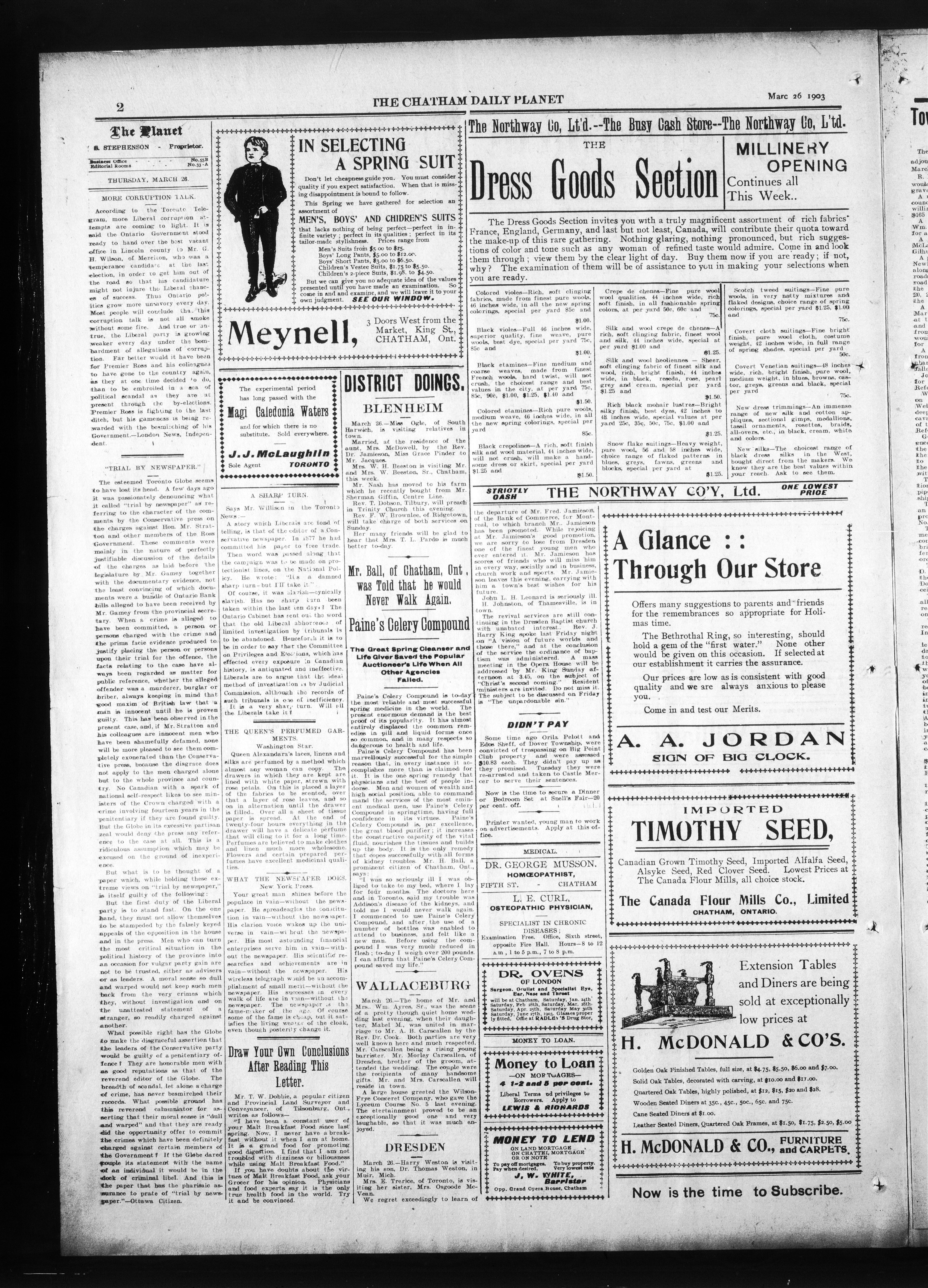 - The Chatham Daily Planet : Vol. XII, No. 84 (March 26, 1903)
