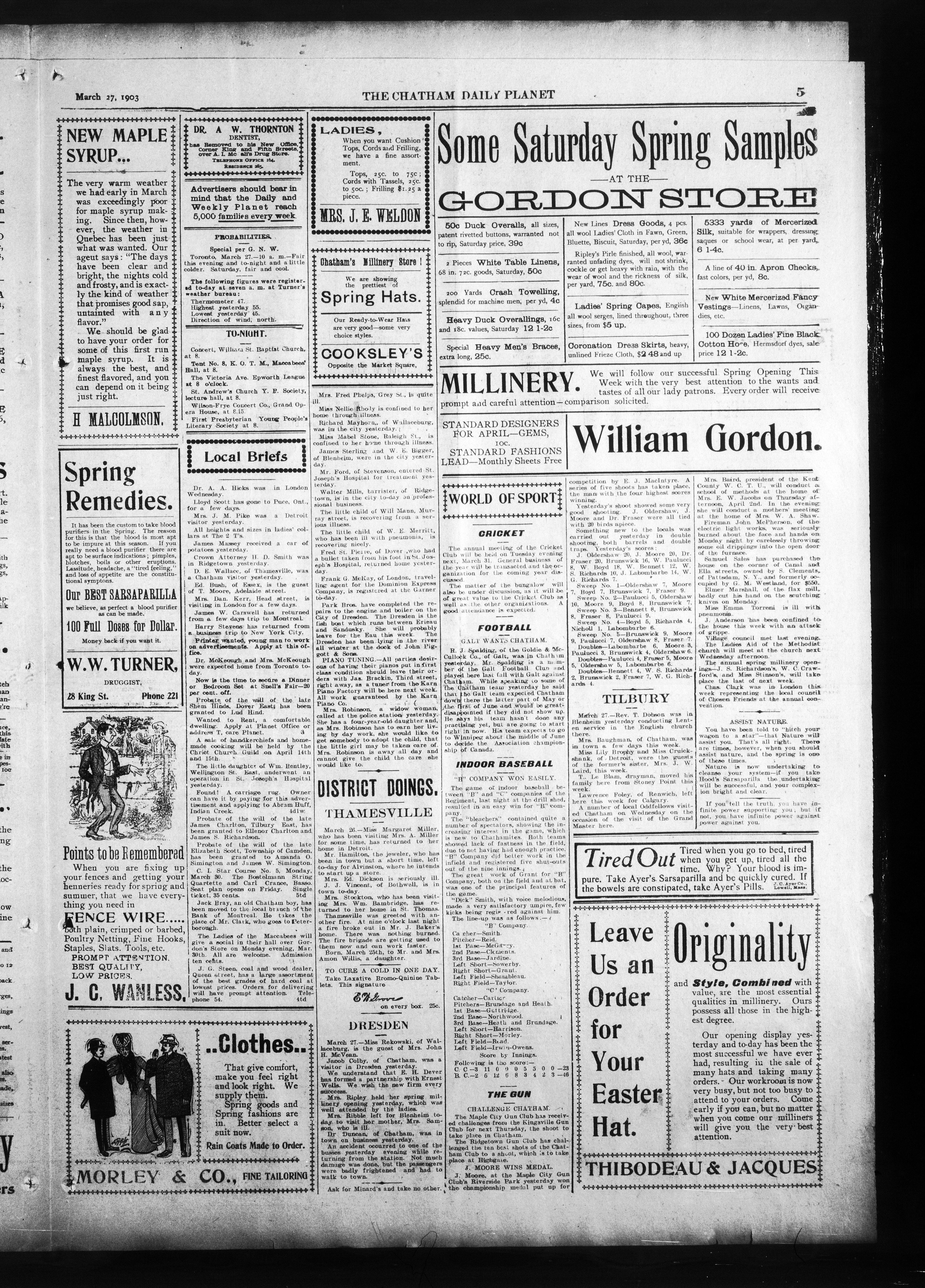 - The Chatham Daily Planet : Vol. XII, No. 85 (March 27, 1903)