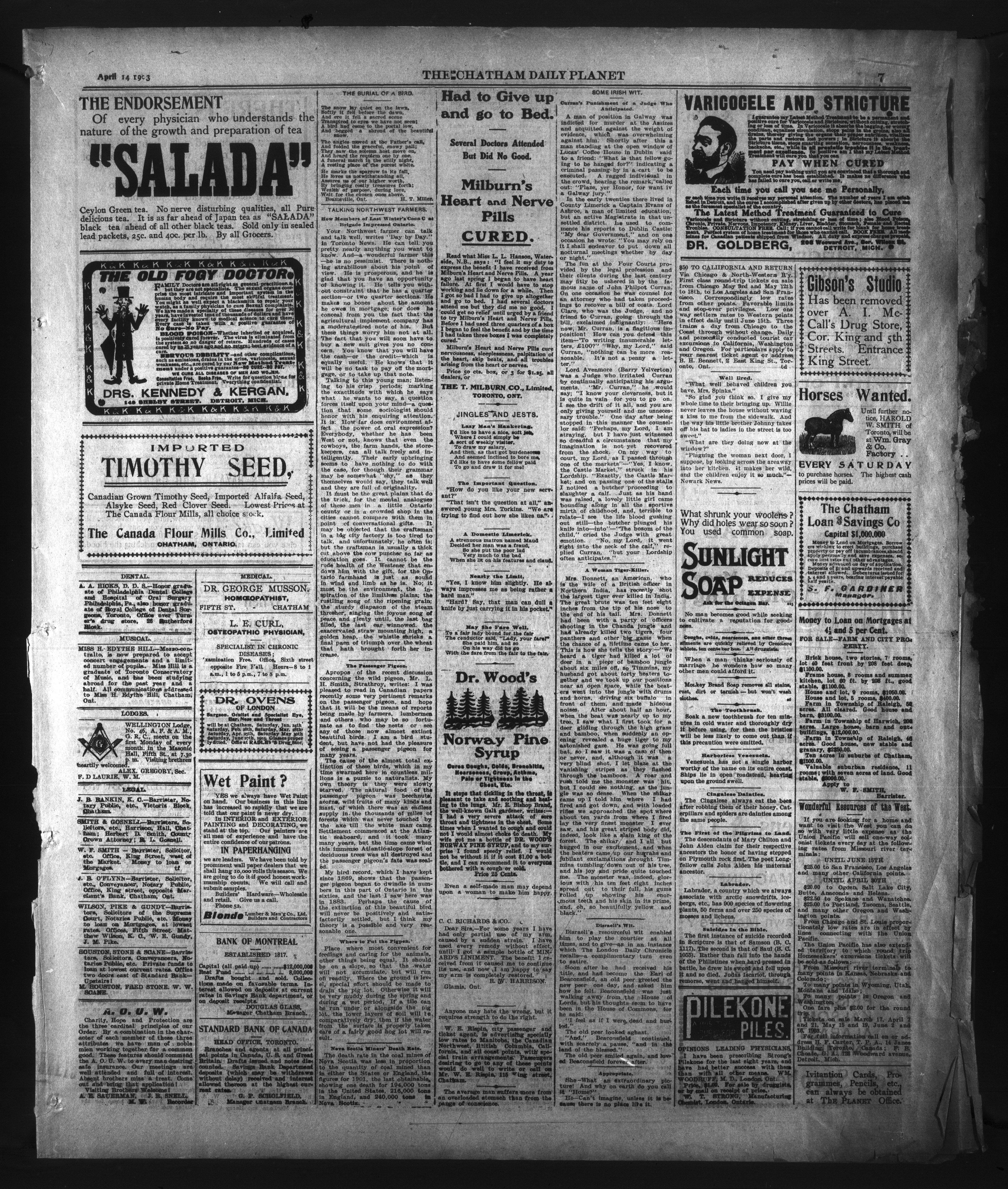 - The Chatham Daily Planet : Vol. XII, No. 100 (April 14, 1903)