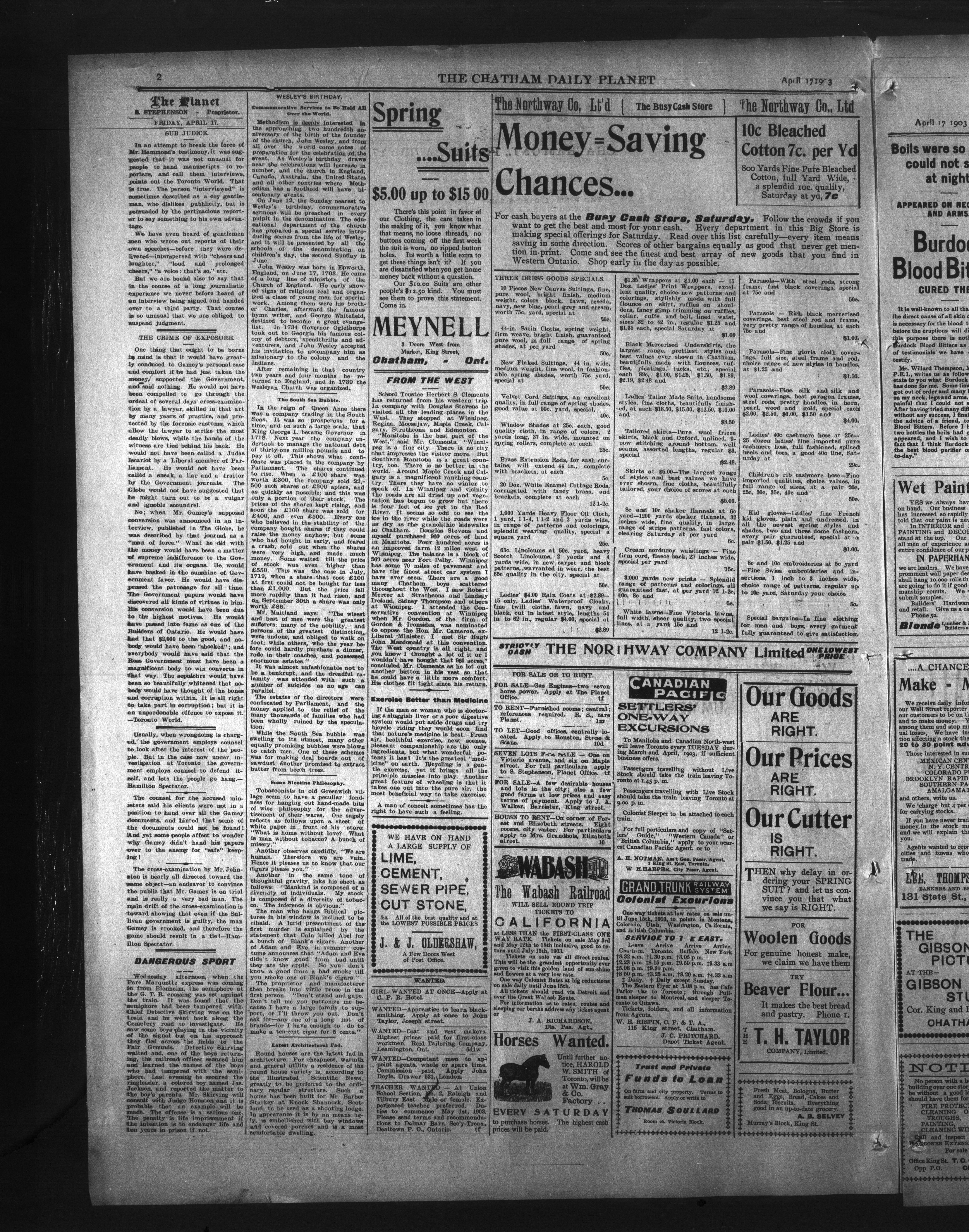 - The Chatham Daily Planet : Vol. XII, No. 103 (April 17, 1903)