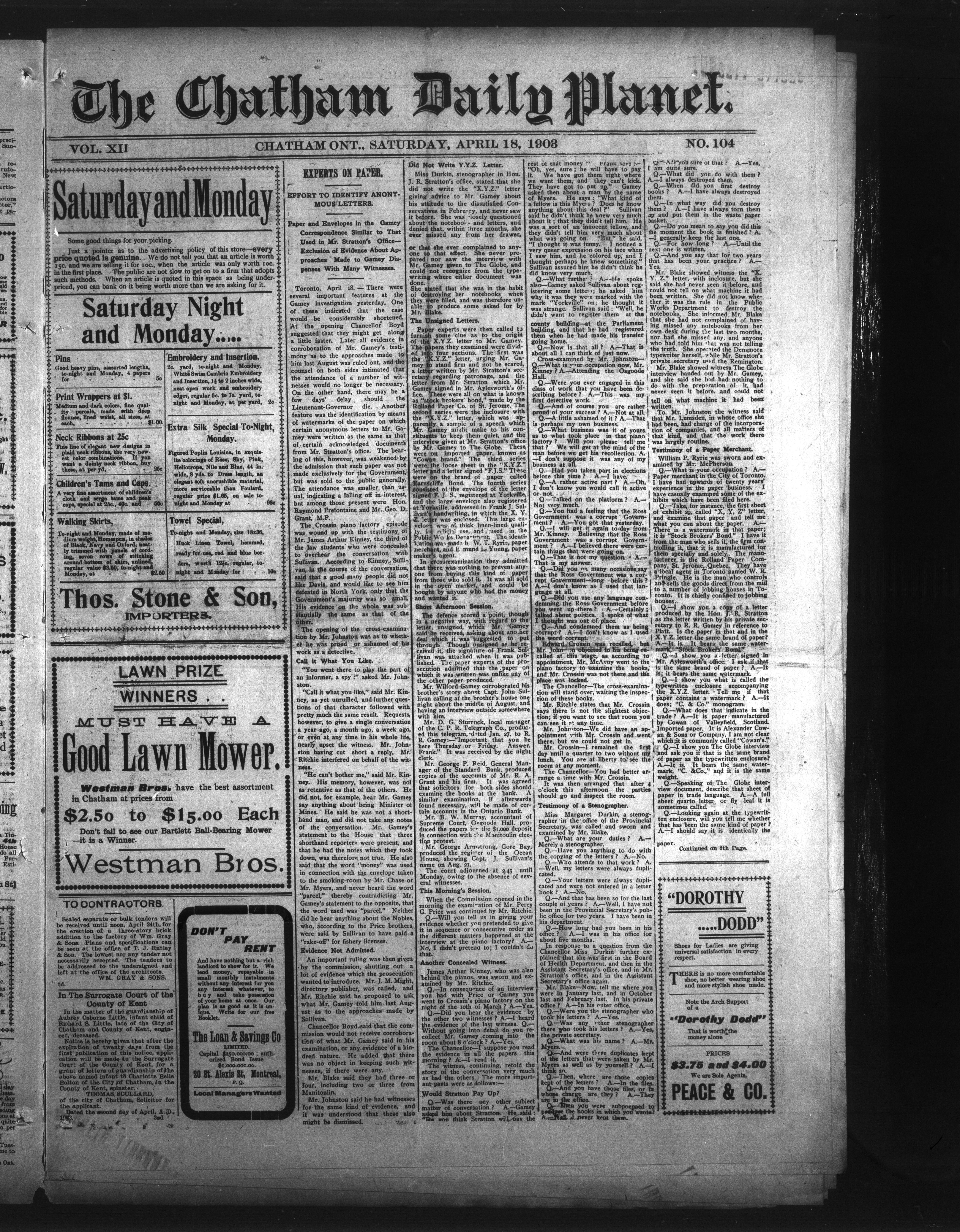 - The Chatham Daily Planet : Vol. XII, No. 104 (April 18, 1903)