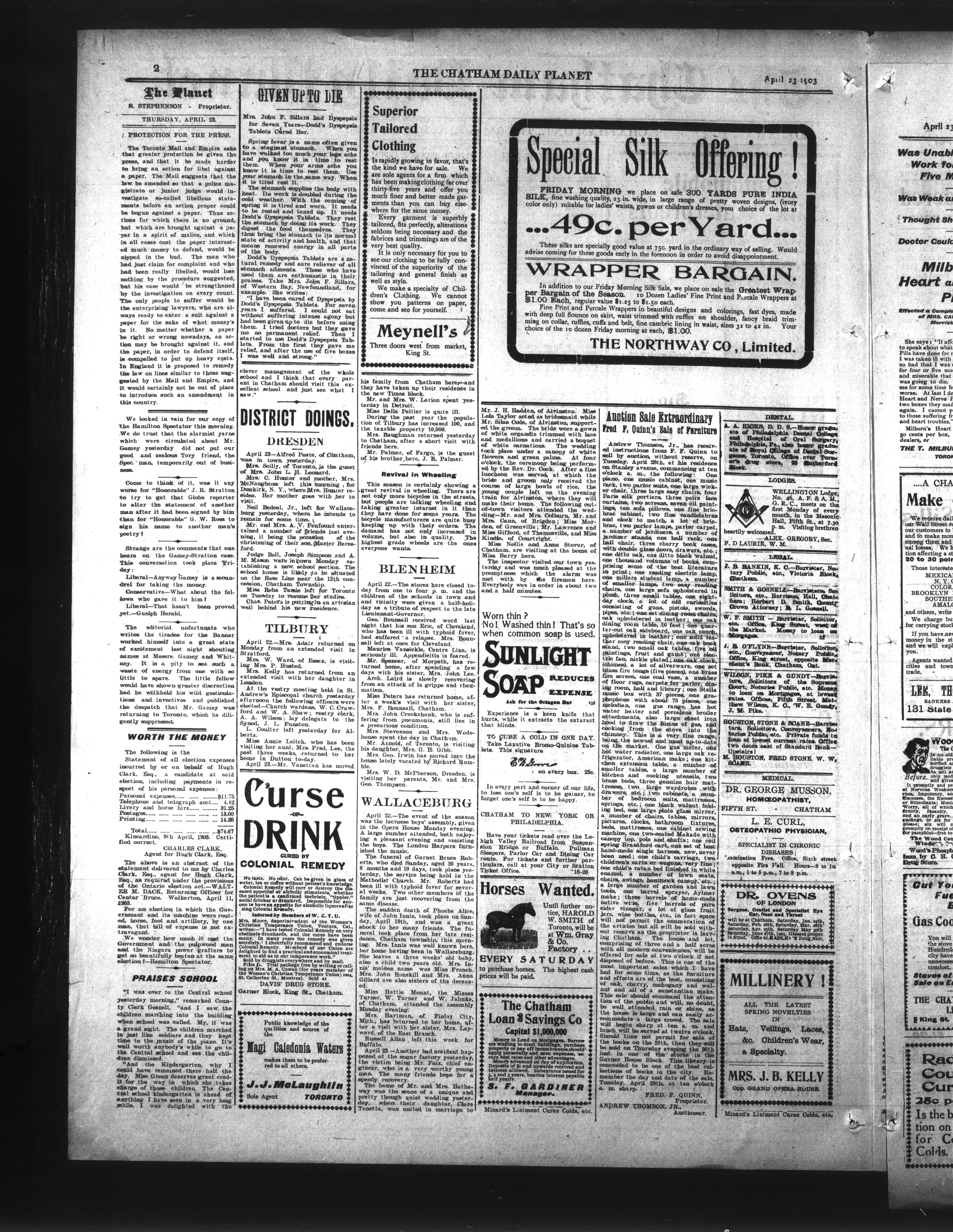 - The Chatham Daily Planet : Vol. XII, No. 108 (April 23, 1903)