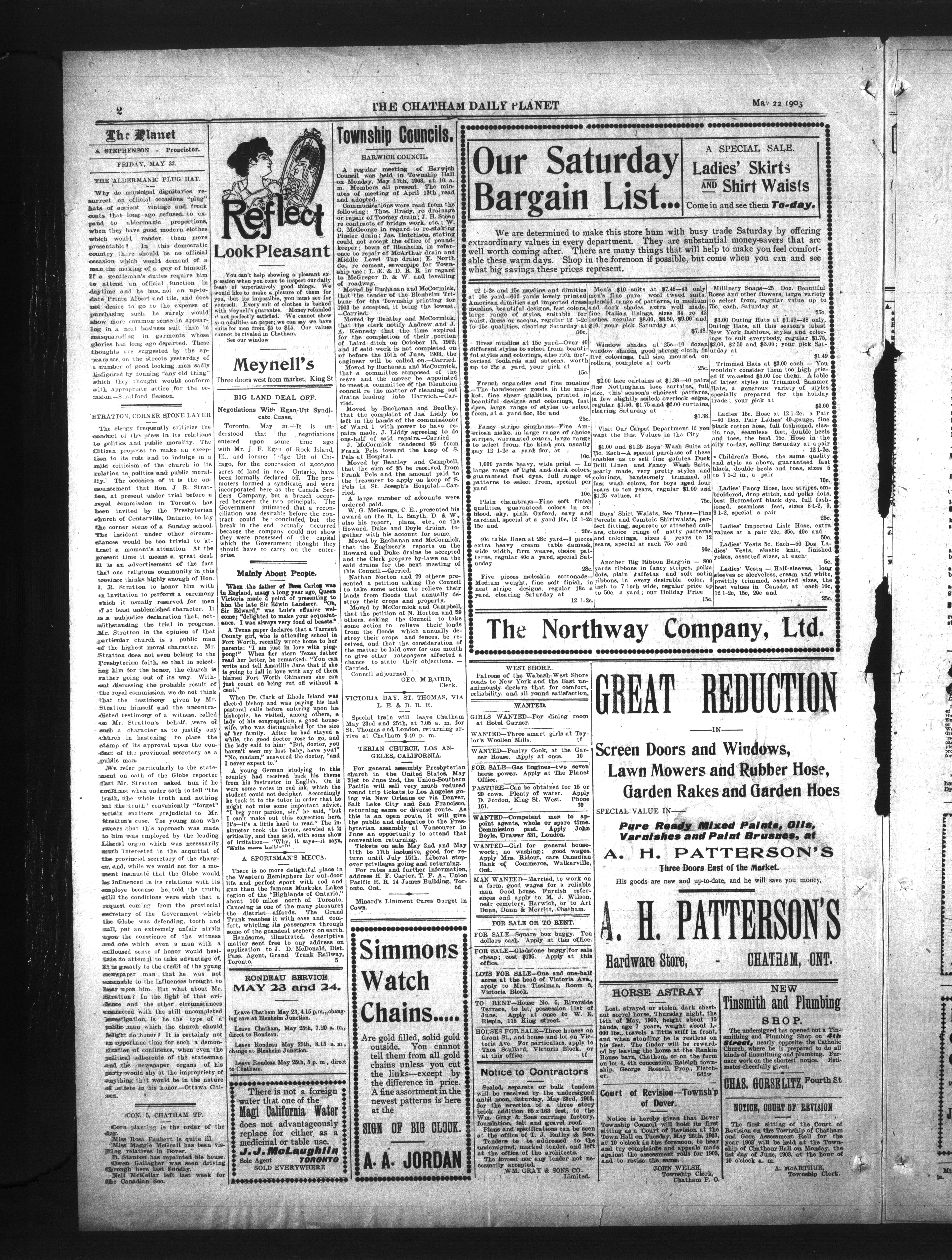 - The Chatham Daily Planet : Vol. XII, No. 133 (May 22, 1903)