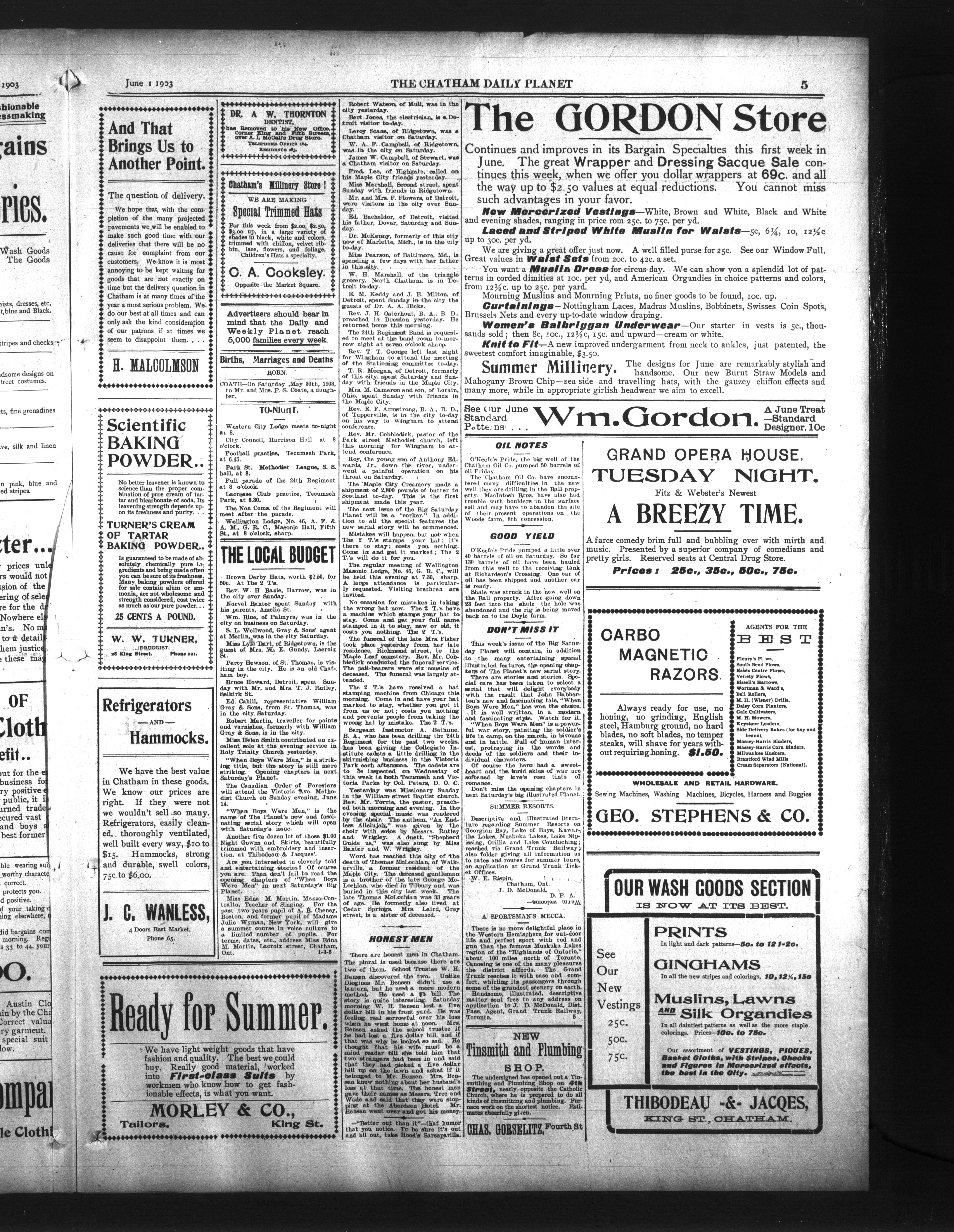 - The Chatham Daily Planet : Vol. XII, No. 141 (June 1, 1903)