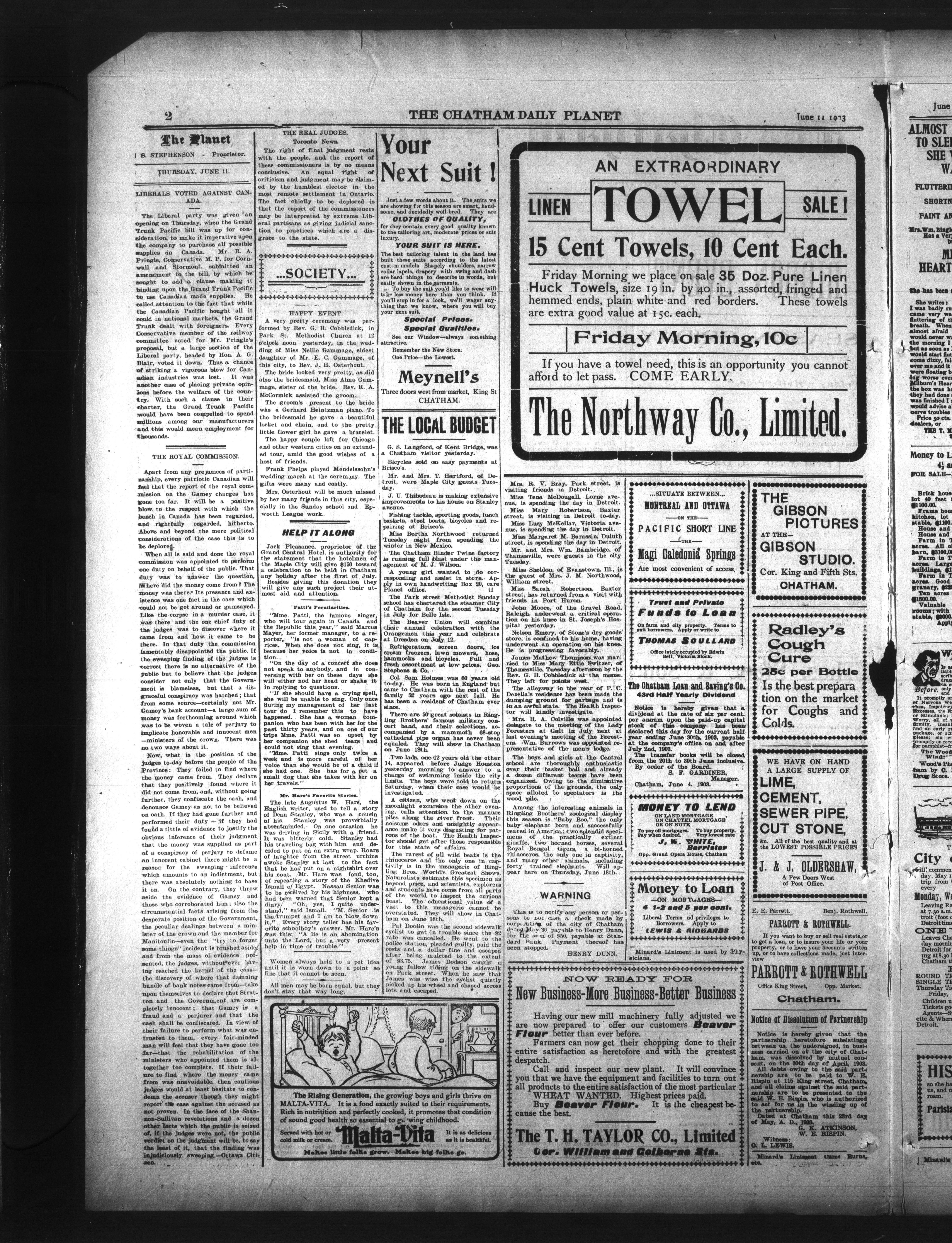 - The Chatham Daily Planet : Vol. XII, No. 140 (June 11, 1903)