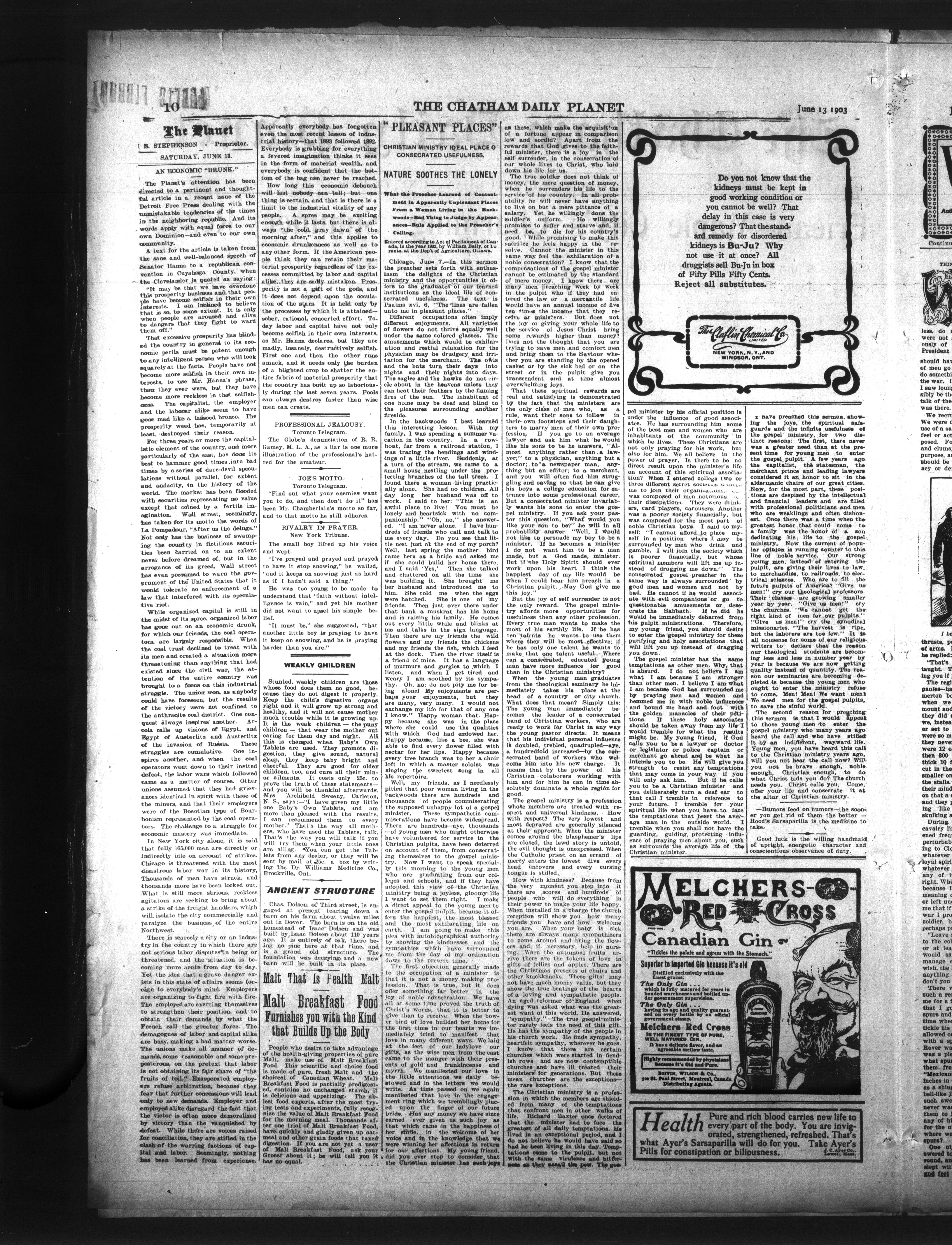 - The Chatham Daily Planet : Vol. XII, No. 142 (June 13, 1903)