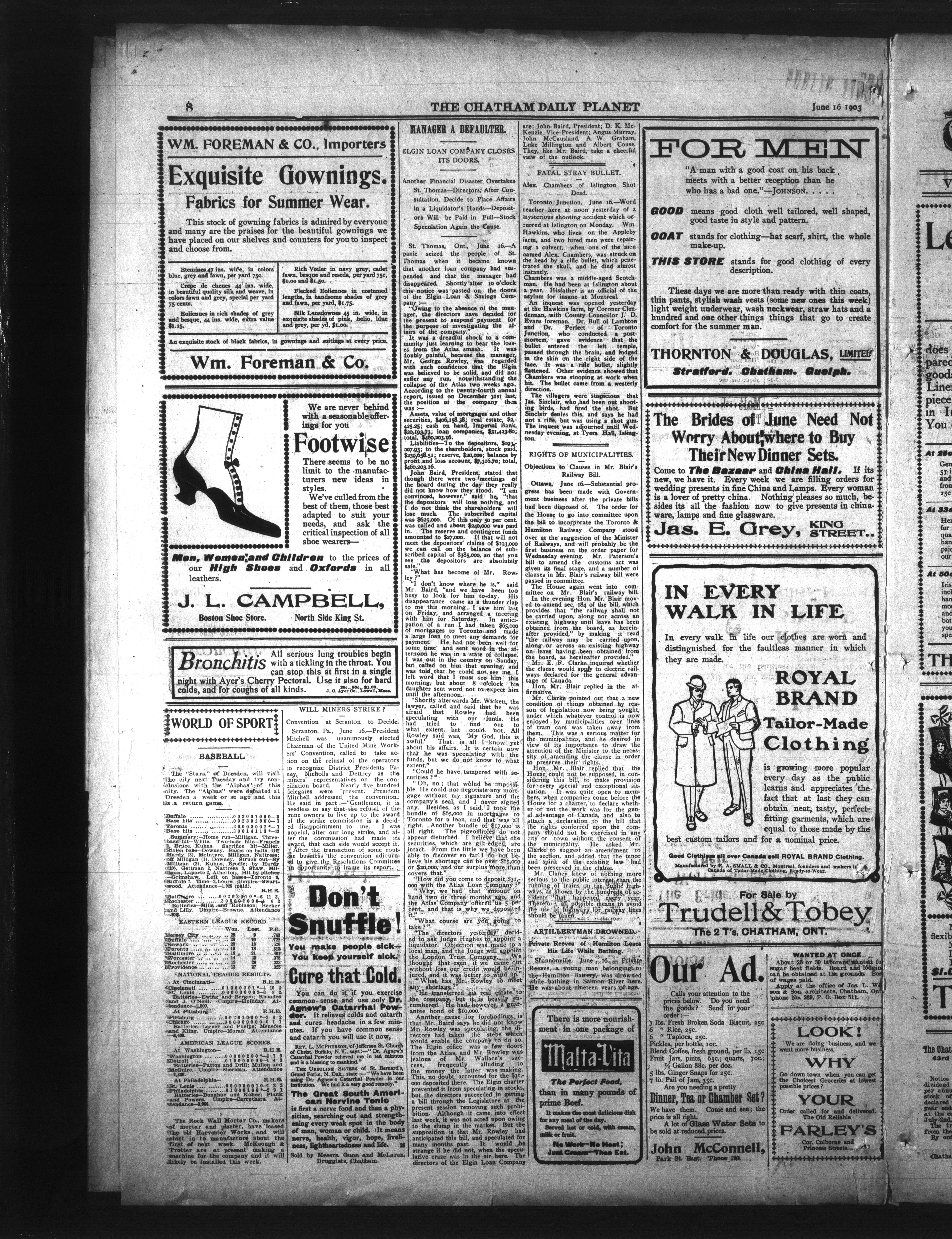 - The Chatham Daily Planet : Vol. XII, No. 144 (June 16, 1903)