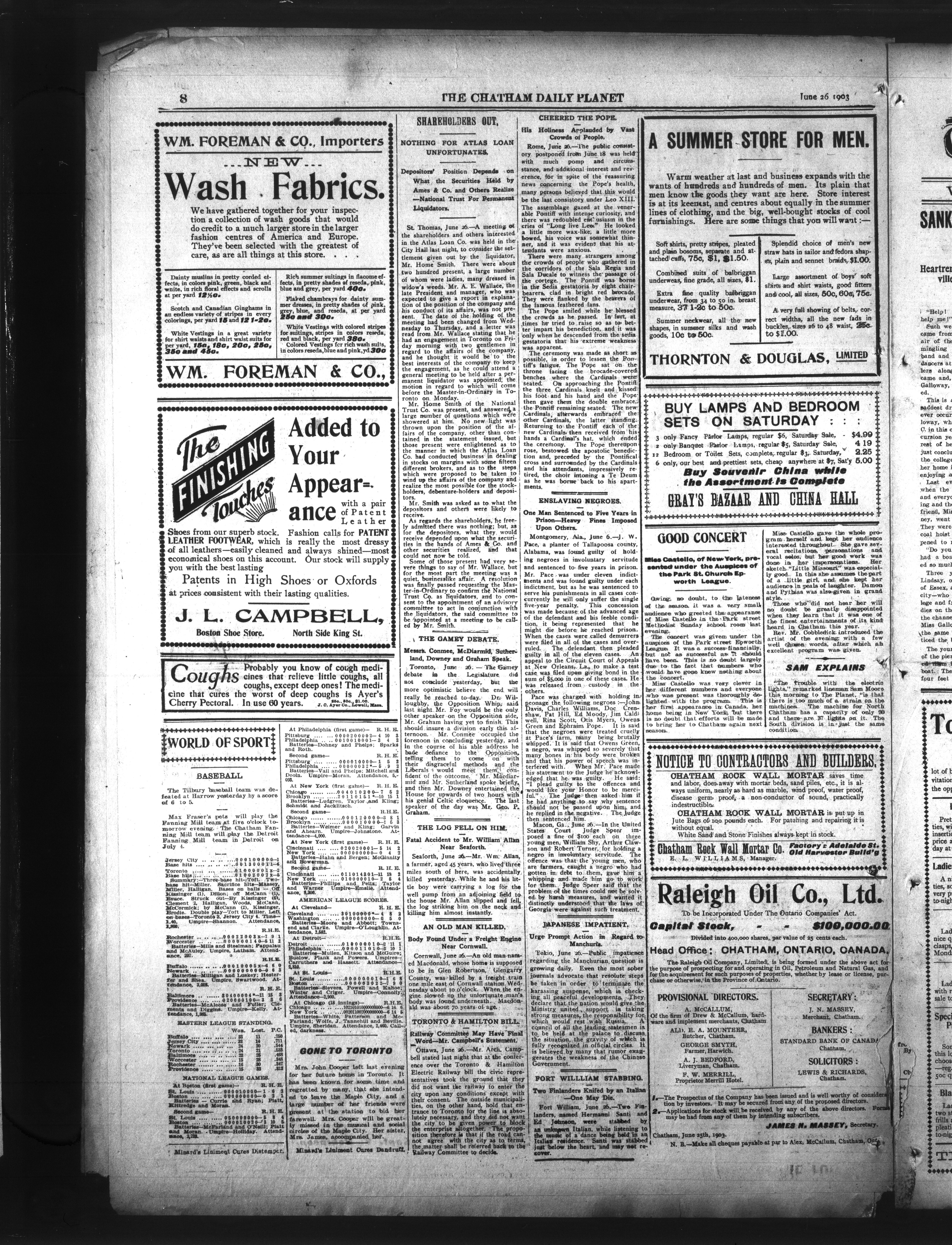 - The Chatham Daily Planet : Vol. XII, No. 153 (June 26, 1903)