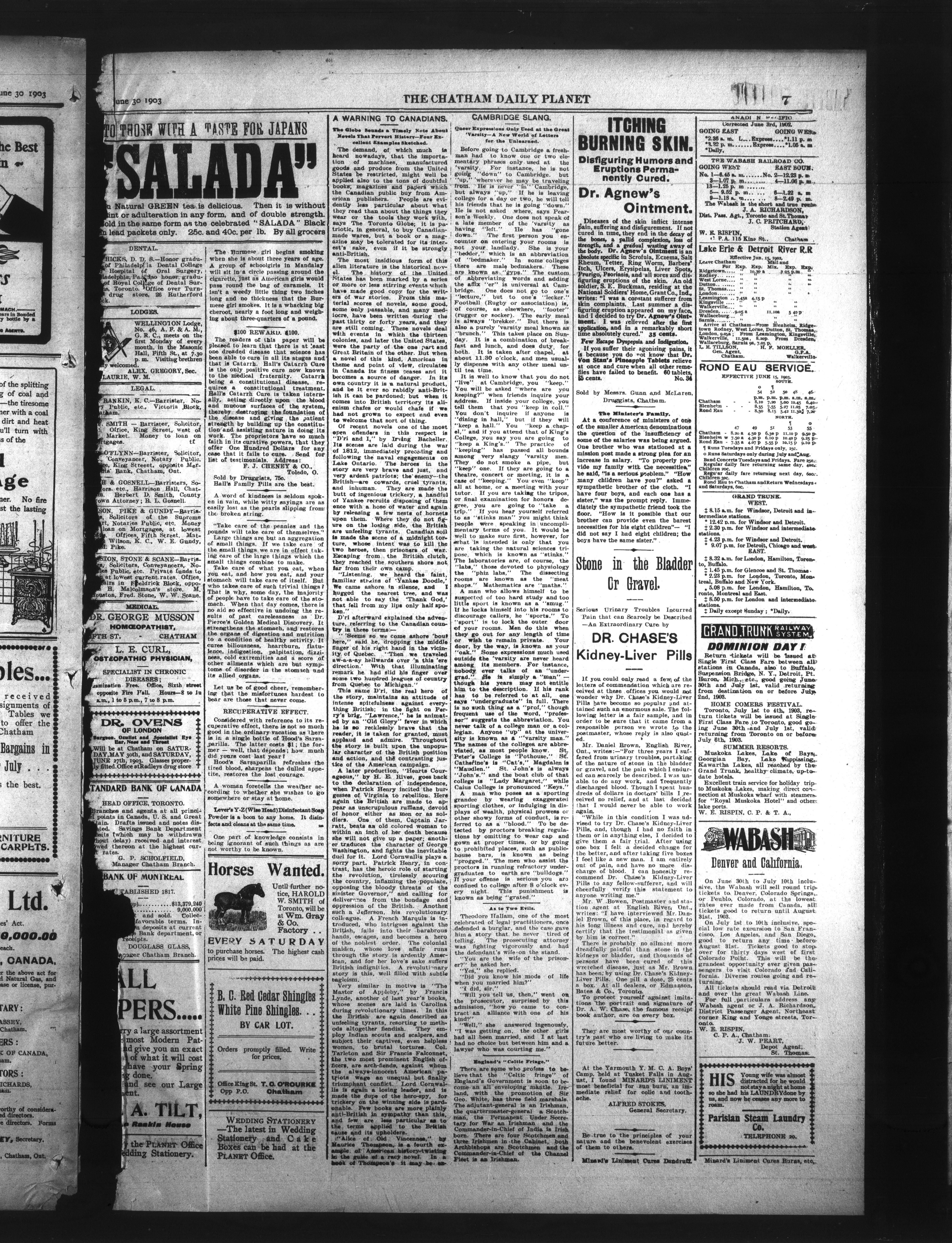 - The Chatham Daily Planet : Vol. XII, No. 156 (June 30, 1903)