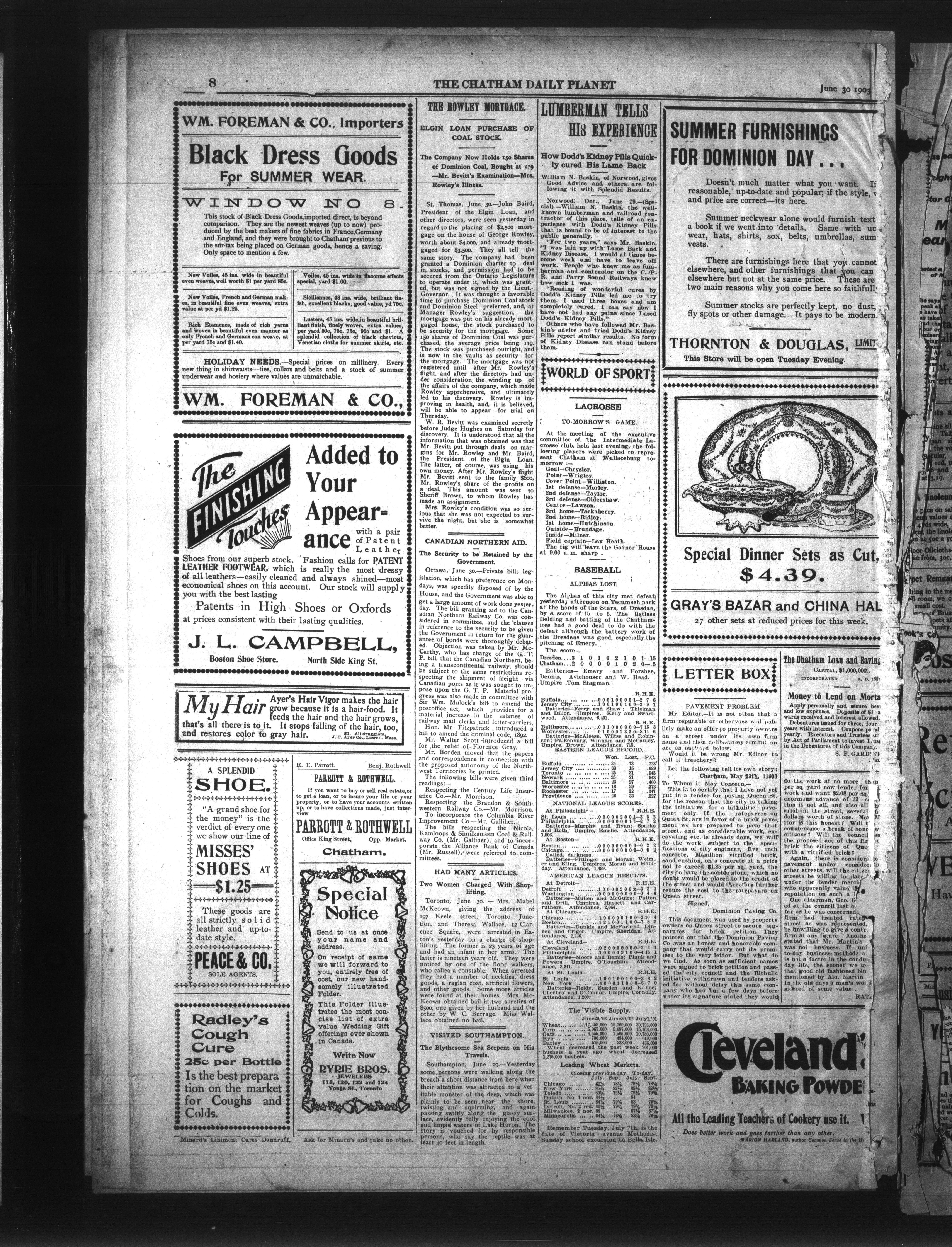 - The Chatham Daily Planet : Vol. XII, No. 156 (June 30, 1903)