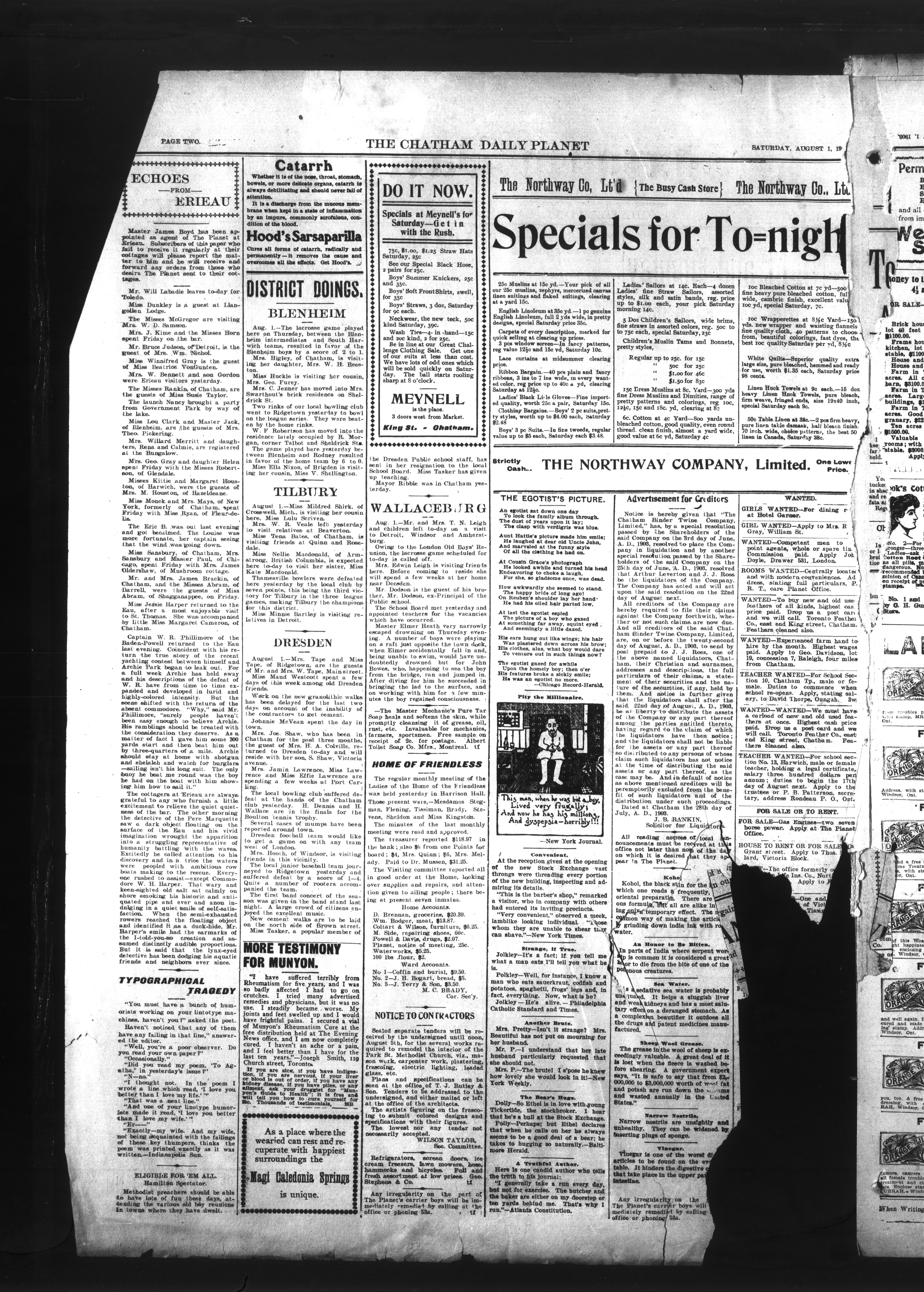 - The Chatham Daily Planet : Vol. XII, No. 184 (August 1, 1903)