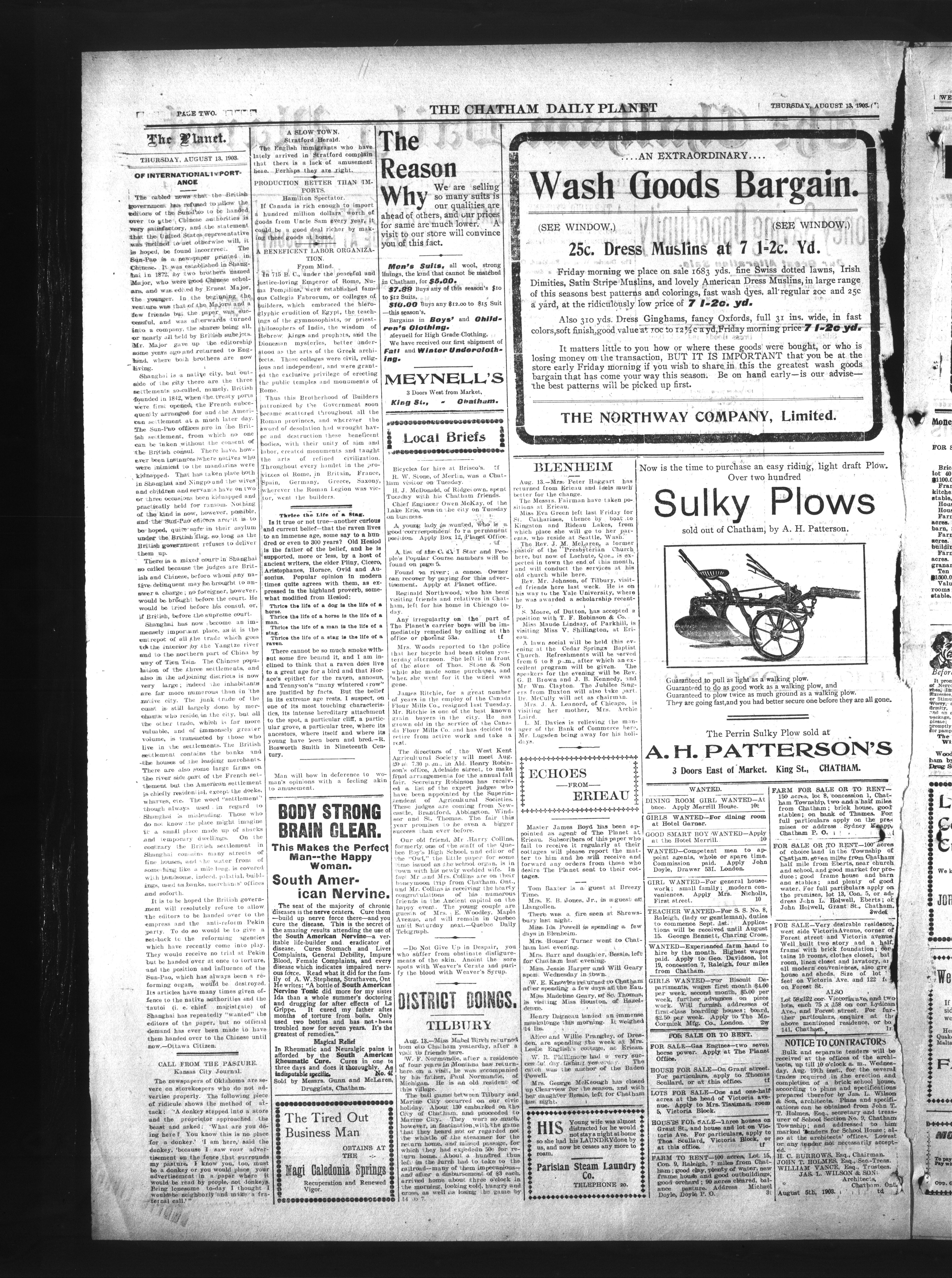 - The Chatham Daily Planet : Vol. XII, No. 194 (August 13, 1903)