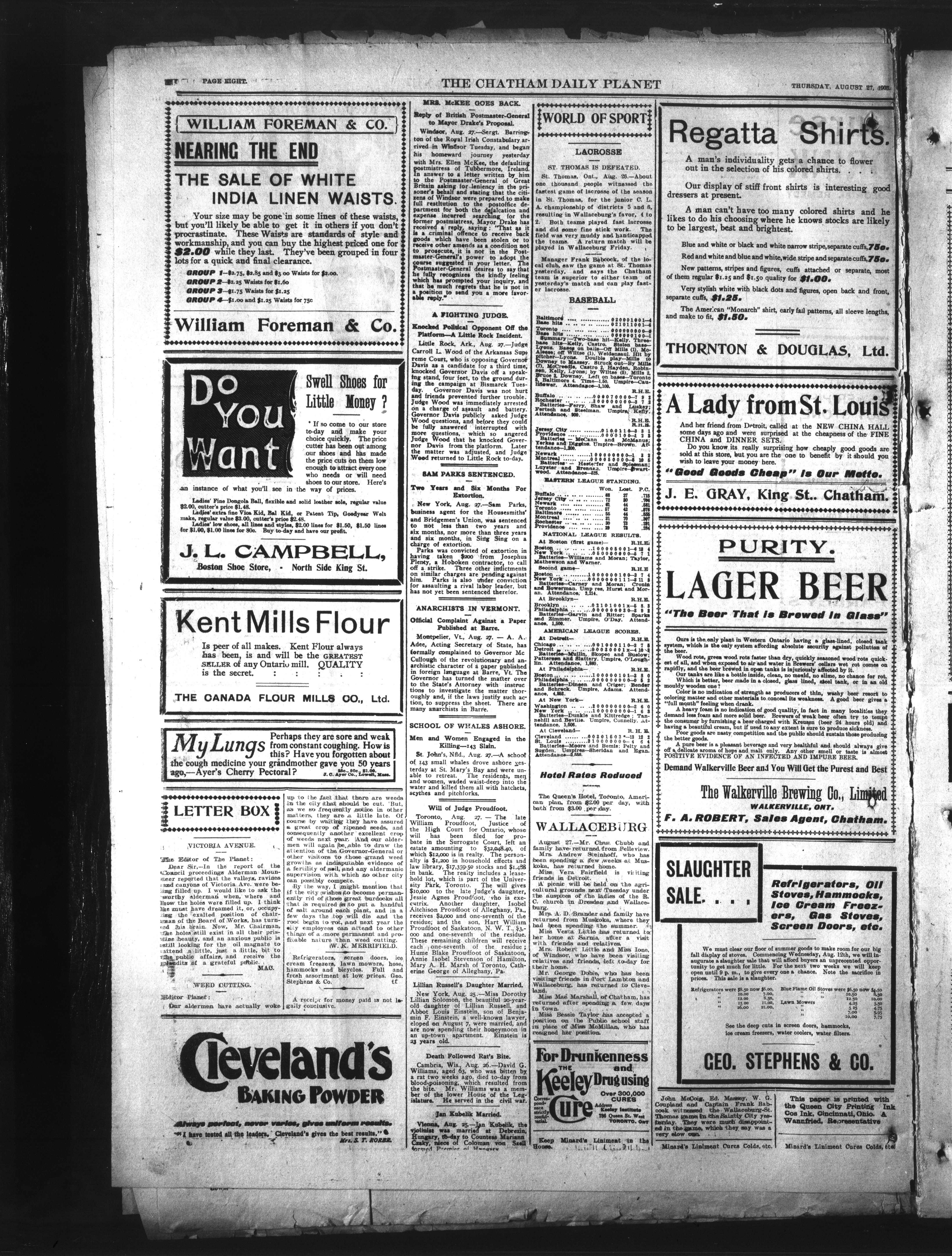 - The Chatham Daily Planet : Vol. XII, No. 206 (August 27, 1903)
