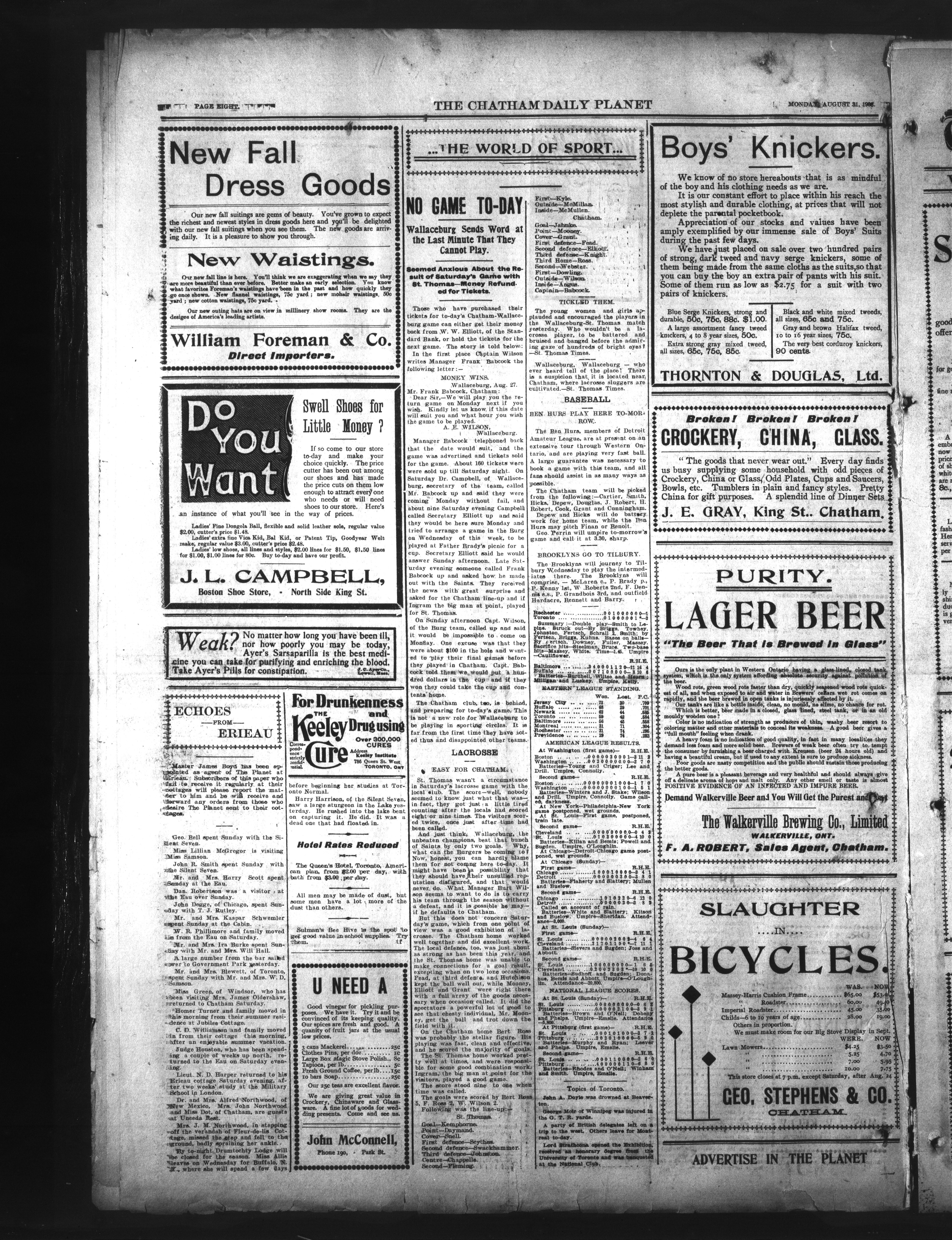 - The Chatham Daily Planet : Vol. XII, No. 209 (August 31, 1903)