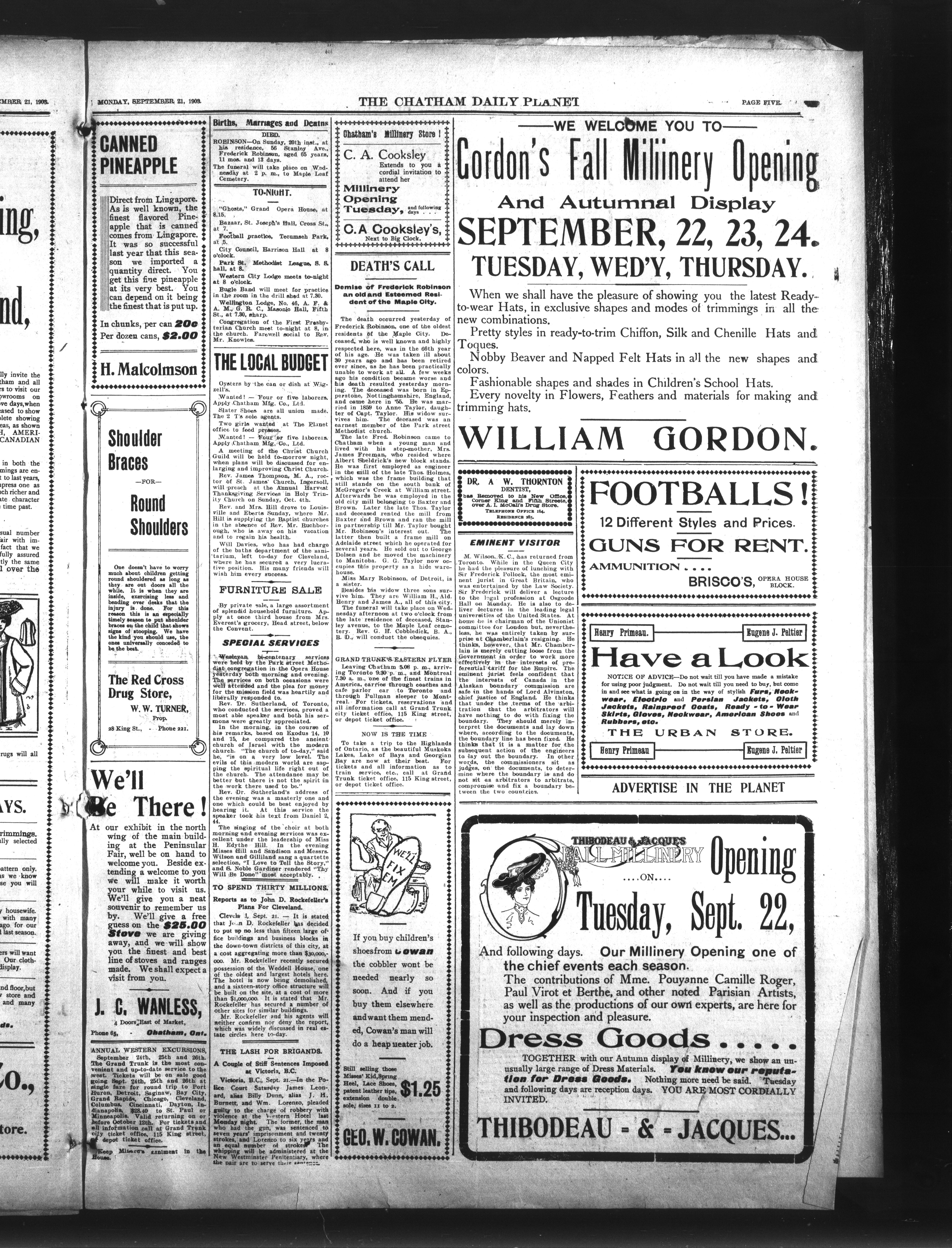 - The Chatham Daily Planet : Vol. XII, No. 227 (September 21, 1903)