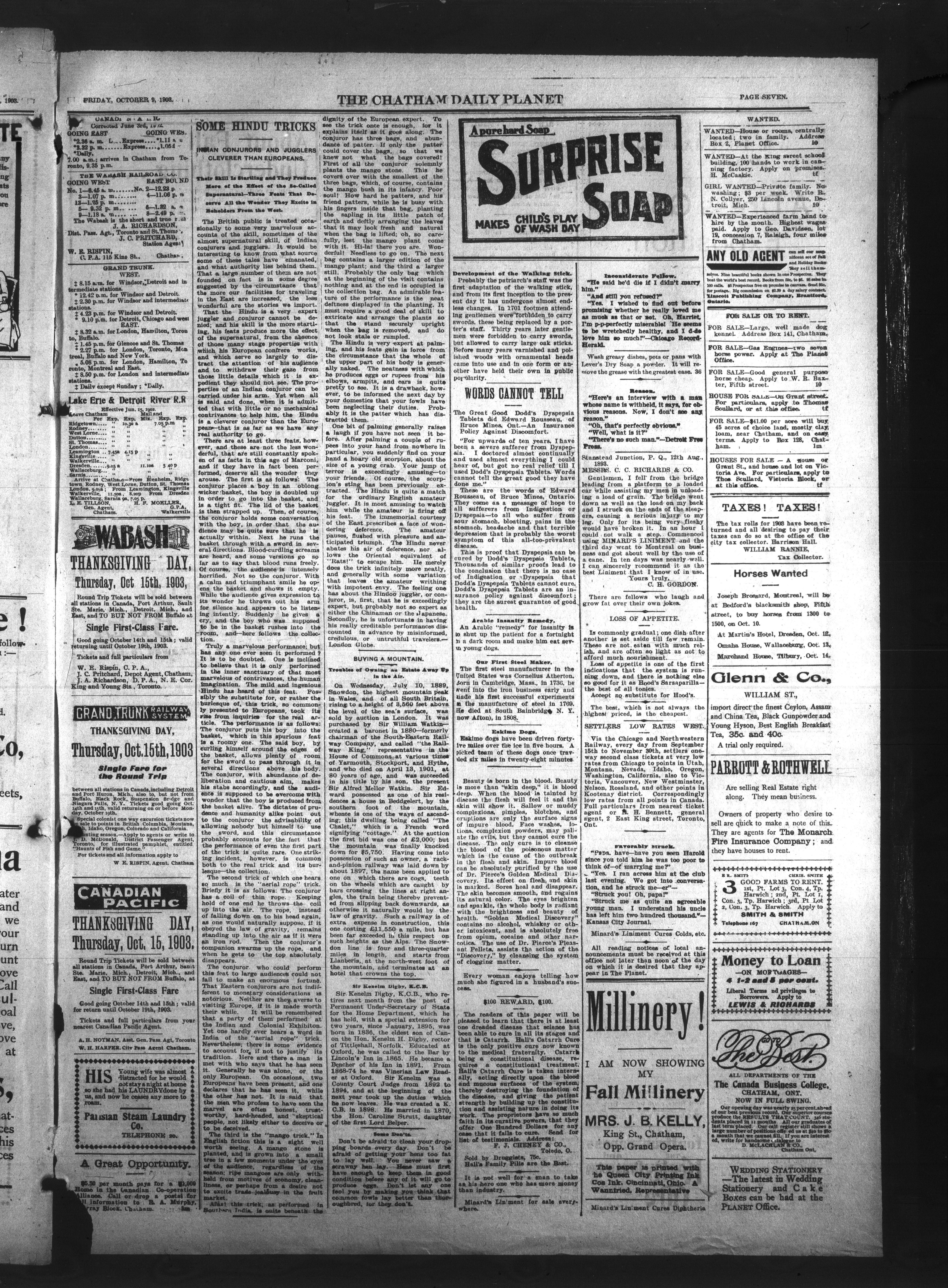 - The Chatham Daily Planet : Vol. XII, No. 243 (October 9, 1903)