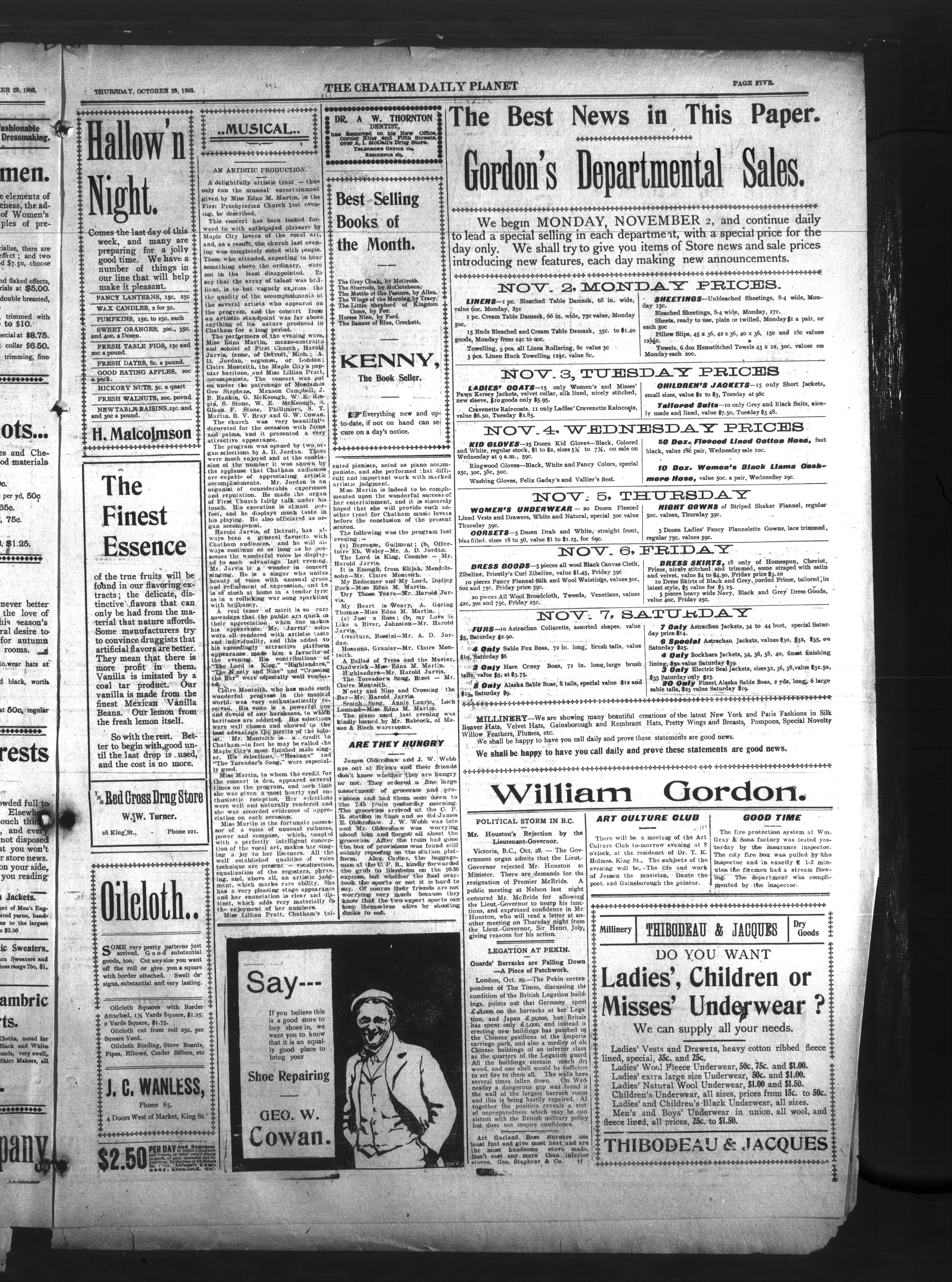 - The Chatham Daily Planet : Vol. XII, No. 260 (October 29, 1903)