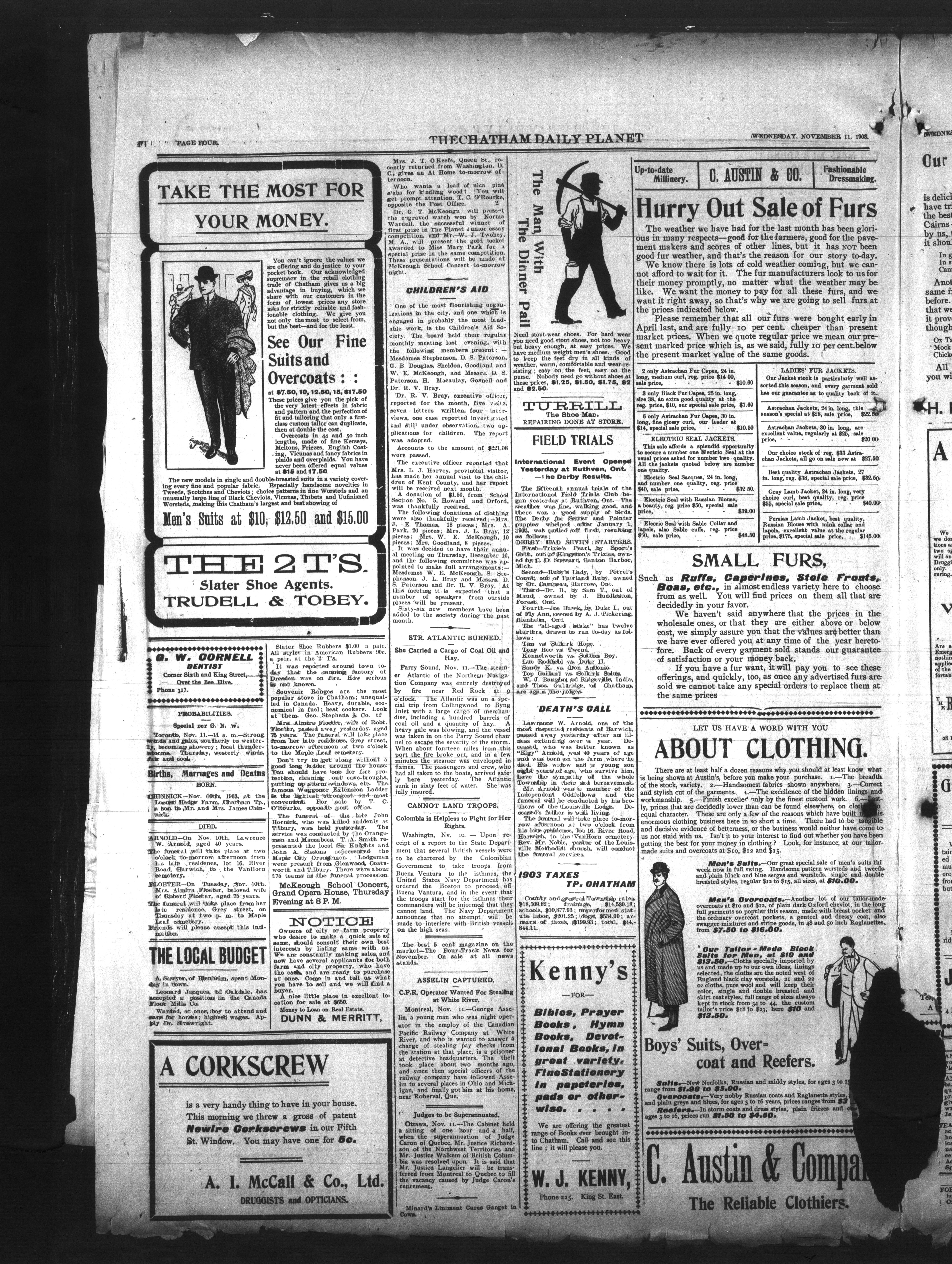 - The Chatham Daily Planet : Vol. XII, No. 271 (November 11, 1903)