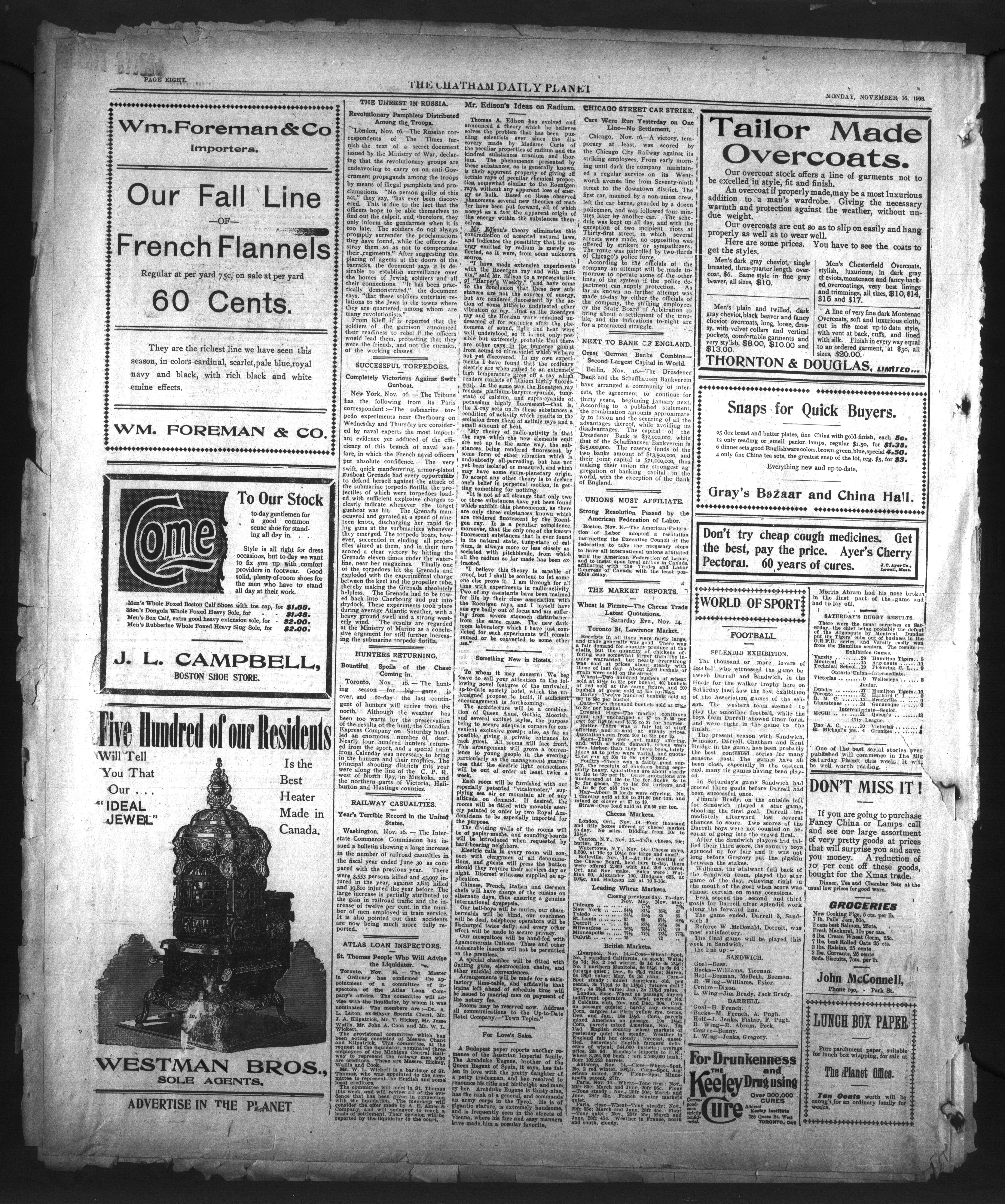 The Chatham Daily Planet. : The Chatham Daily Planet : Vol. XII, No. 275 (November 16, 1903)