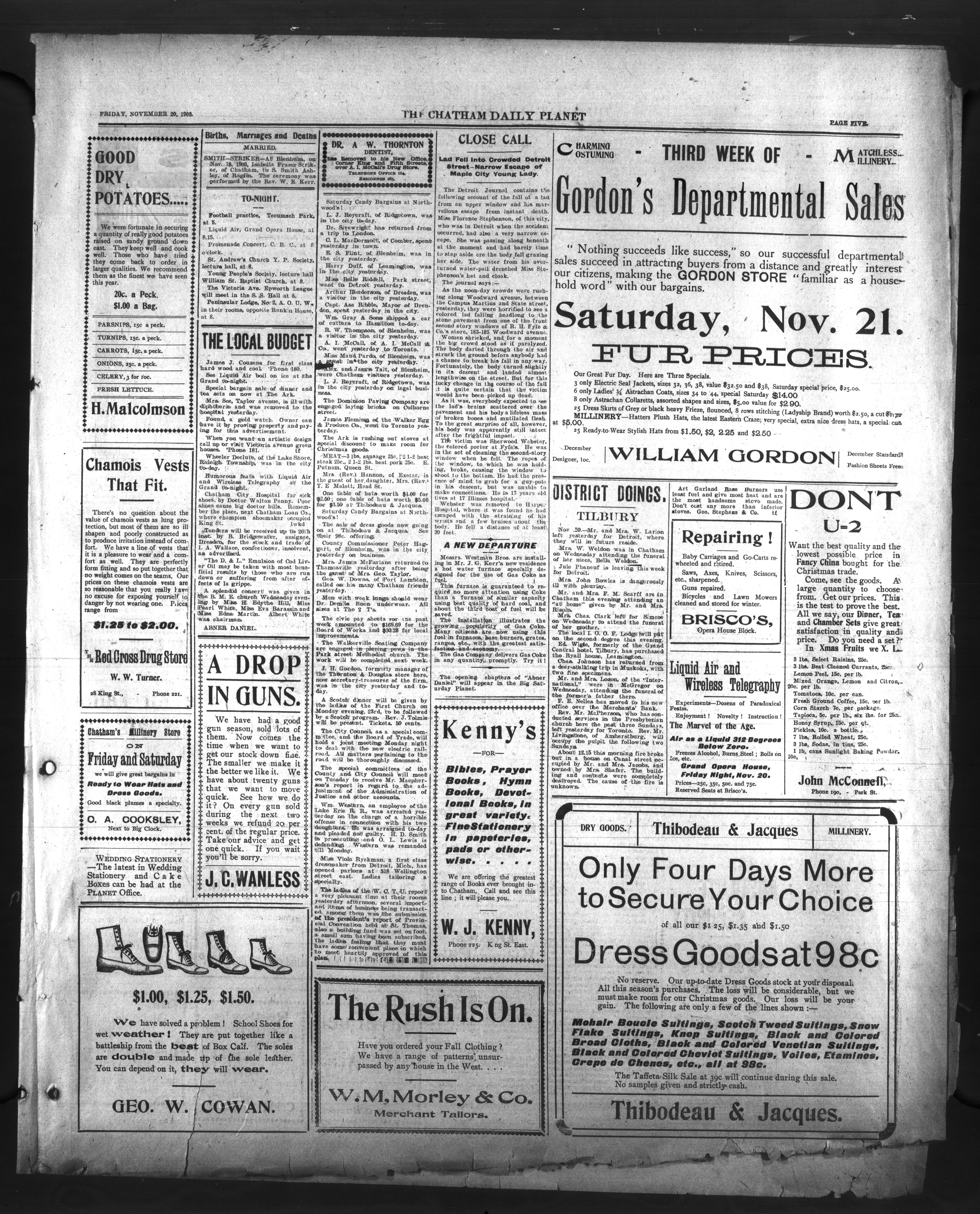 - The Chatham Daily Planet : Vol. XII, No. 279 (November 20, 1903)