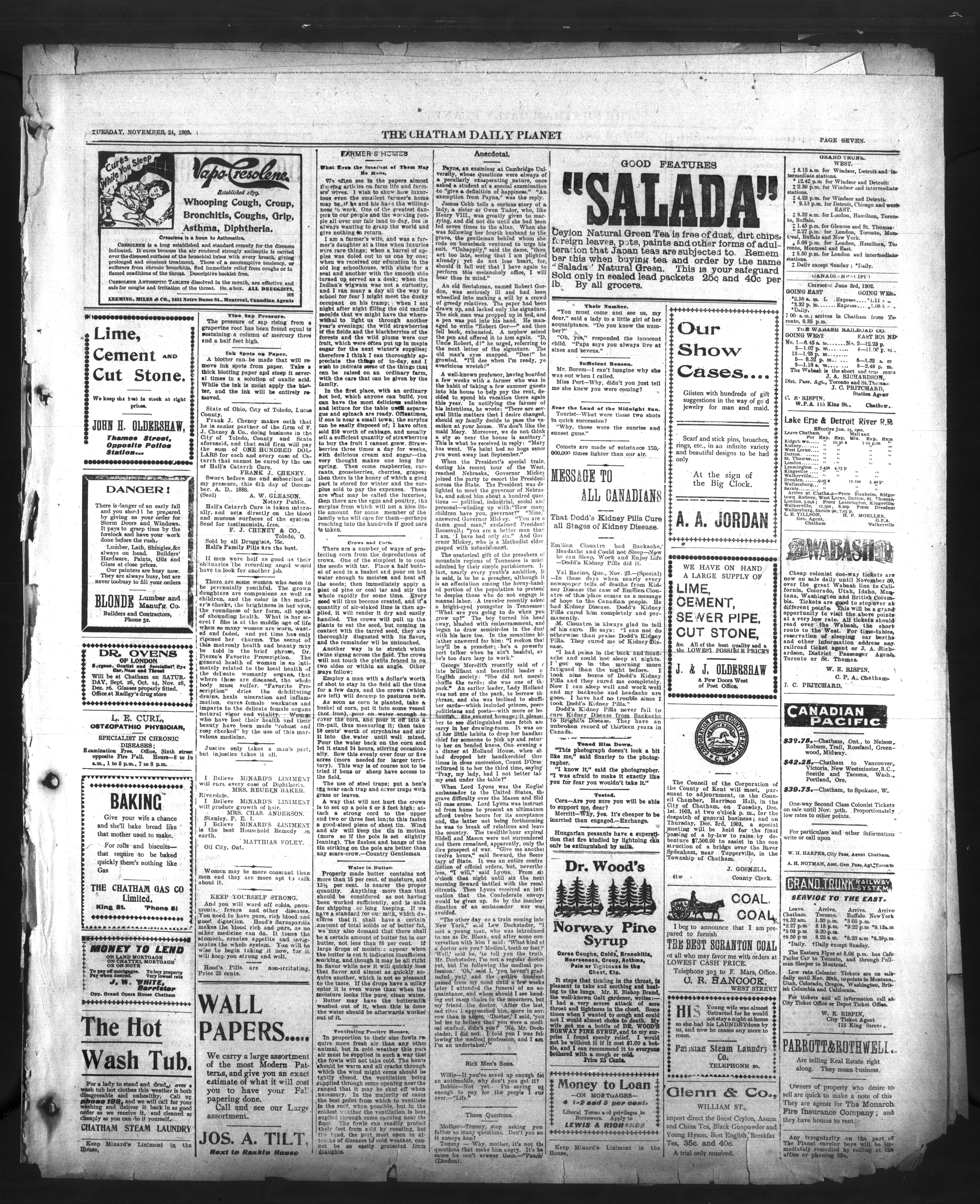- The Chatham Daily Planet : Vol. XII, No. 28 (November 24, 1903)