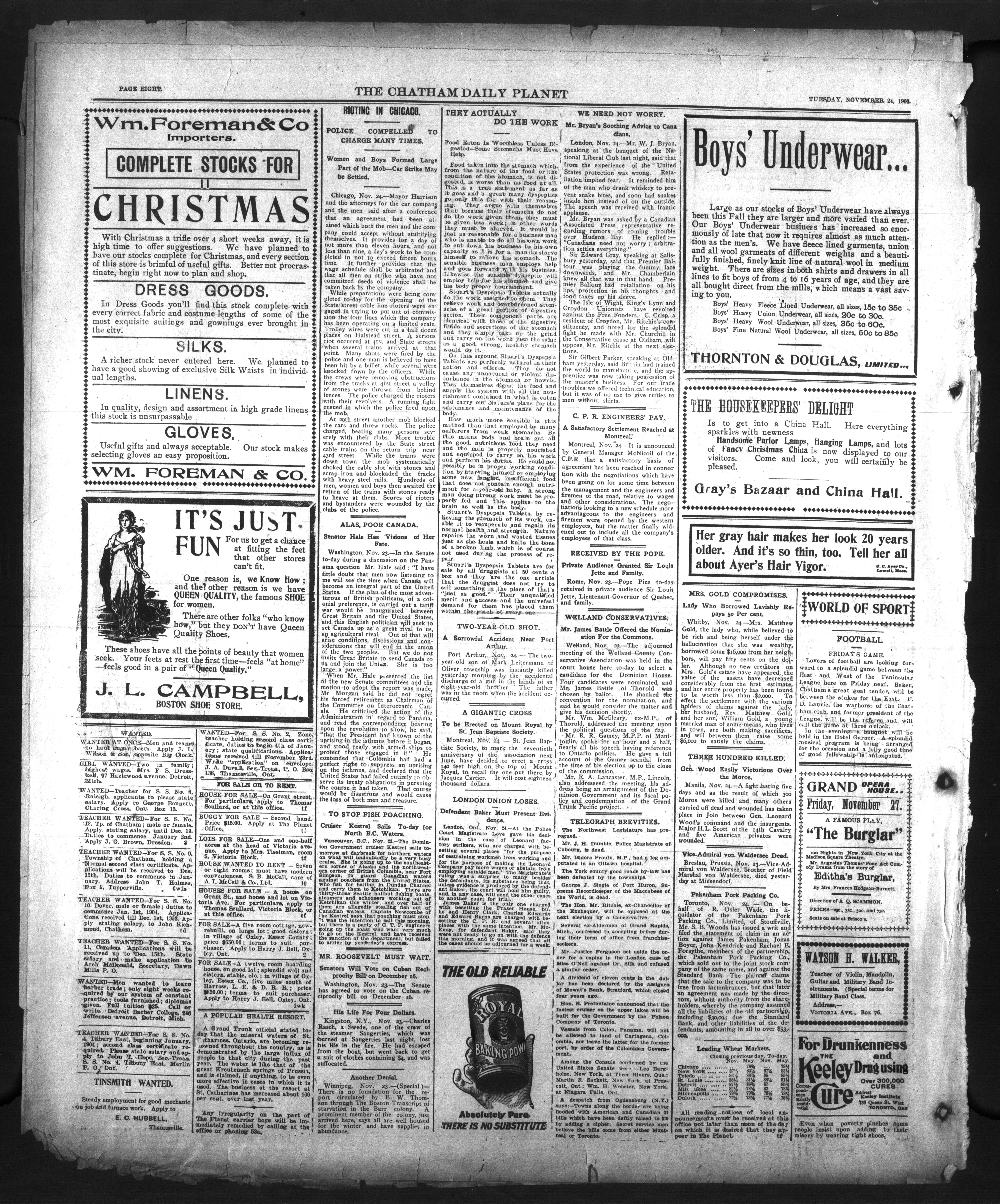 The Chatham Daily Planet. : The Chatham Daily Planet : Vol. XII, No. 28 (November 24, 1903)