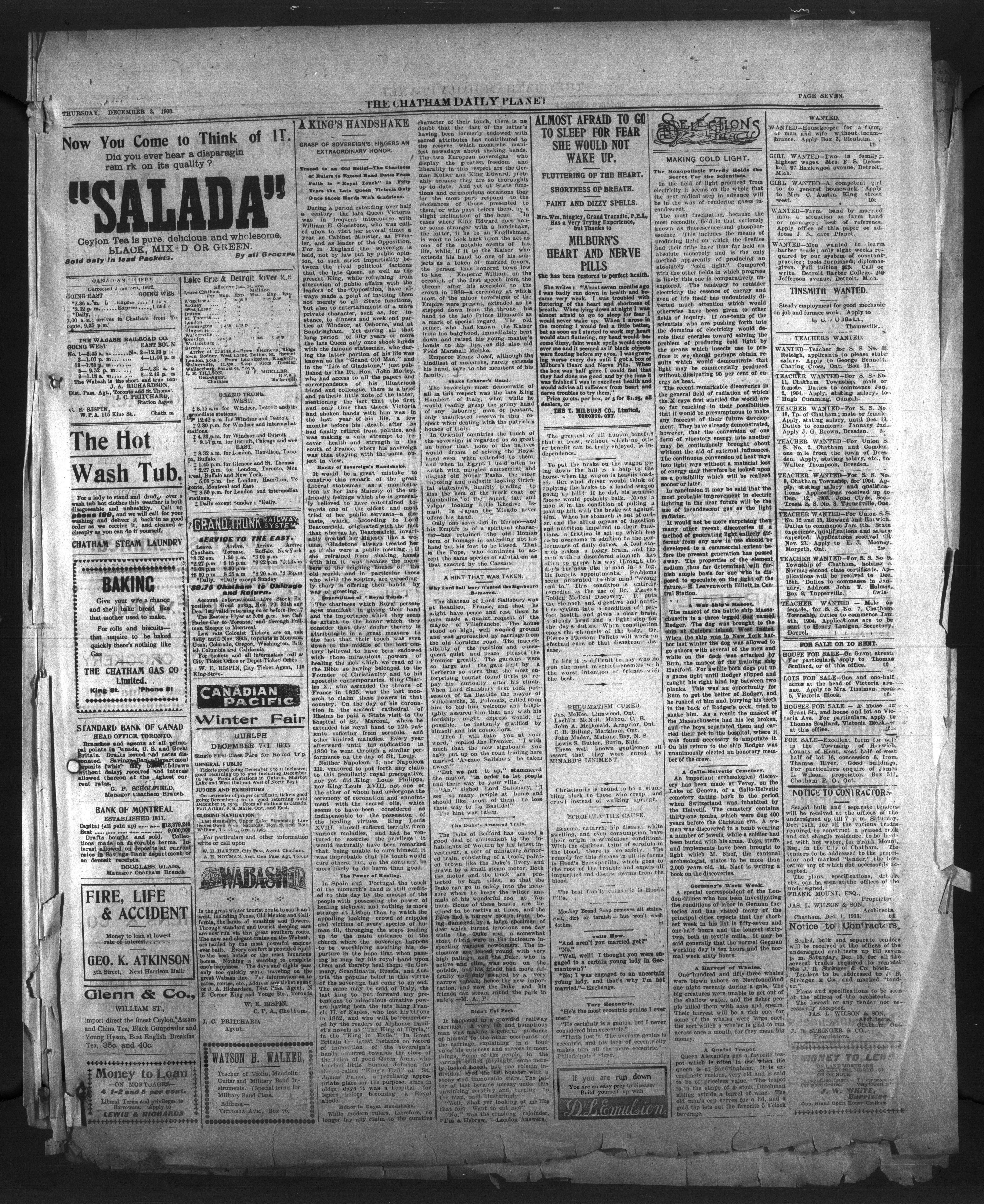 - The Chatham Daily Planet : Vol. XII, No. 290 (December 3, 1903)