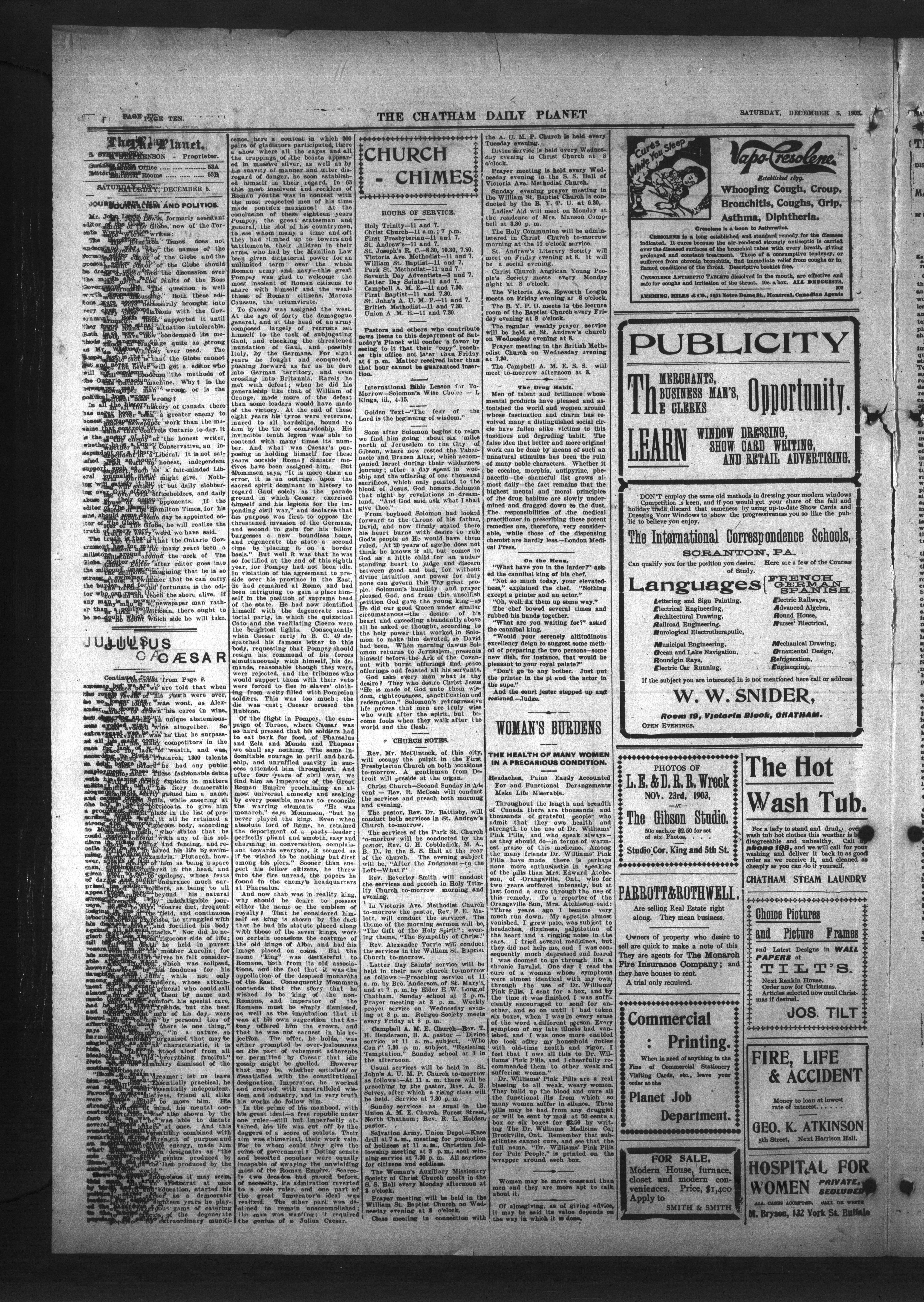 - The Chatham Daily Planet : Vol. XII, No. 292 (December 5, 1903)