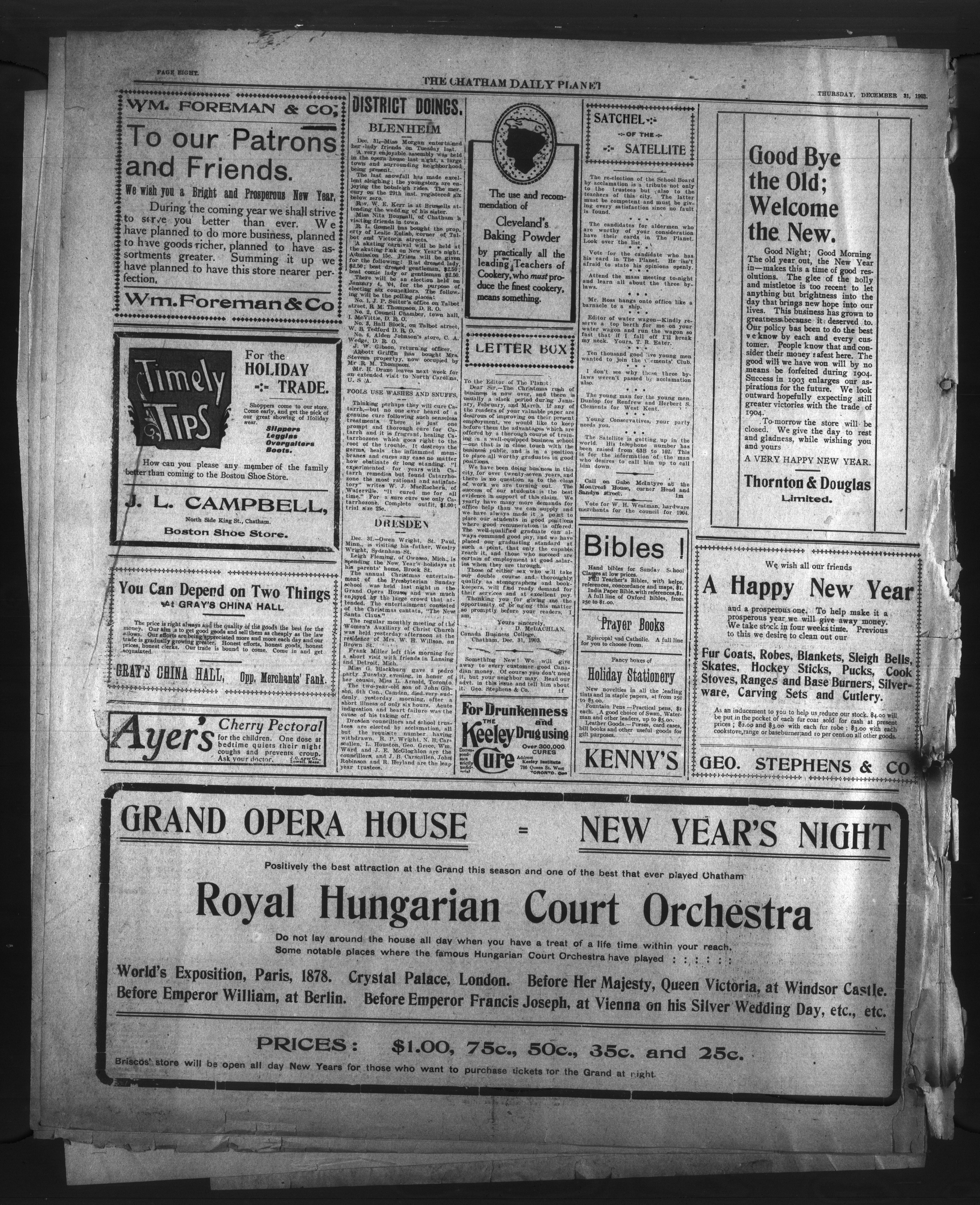 - The Chatham Daily Planet : Vol. XIII, No. 2 (December 31, 1903)