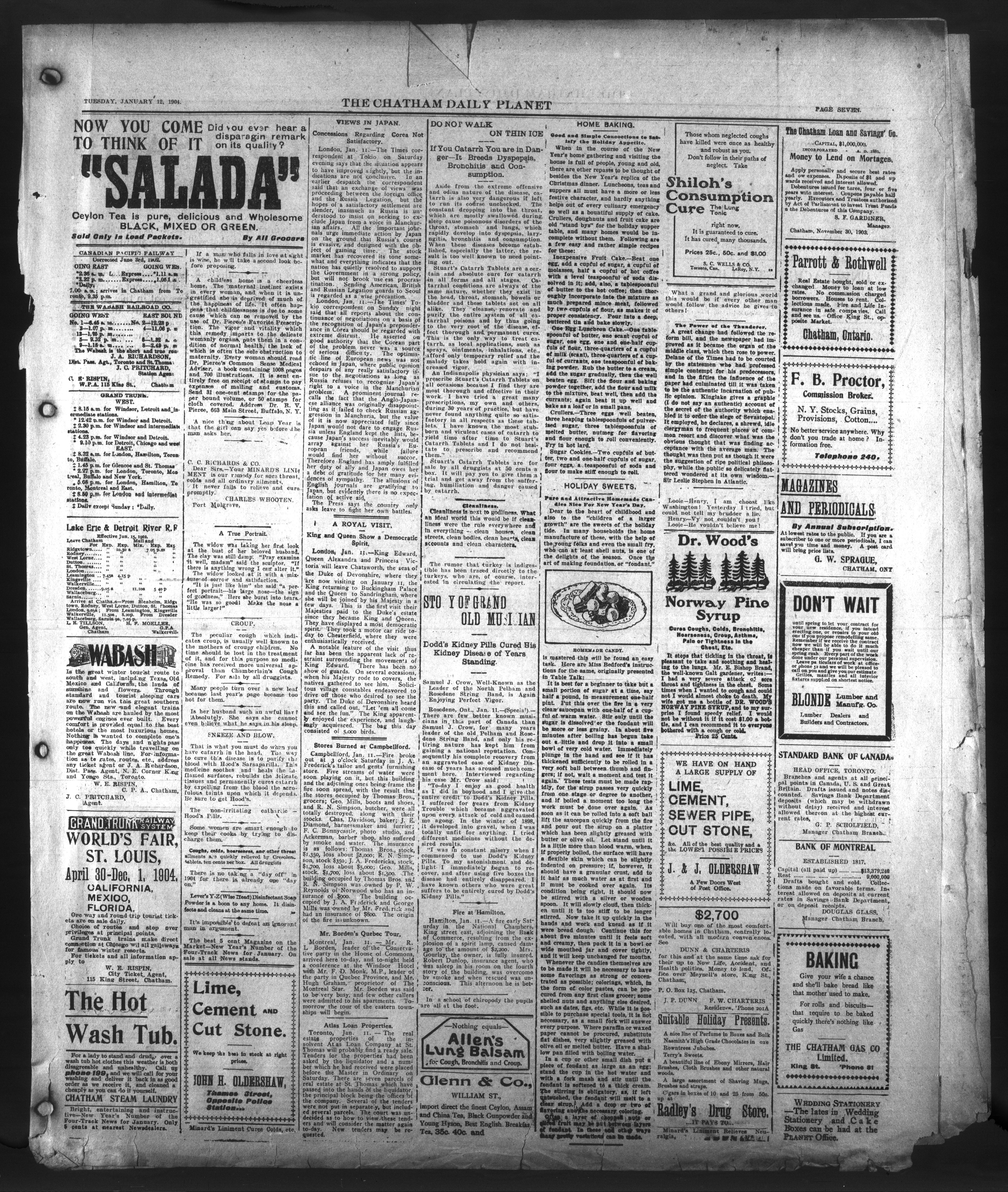 - The Chatham Daily Planet : Vol. XIII, No. 12 (January 12, 1904)