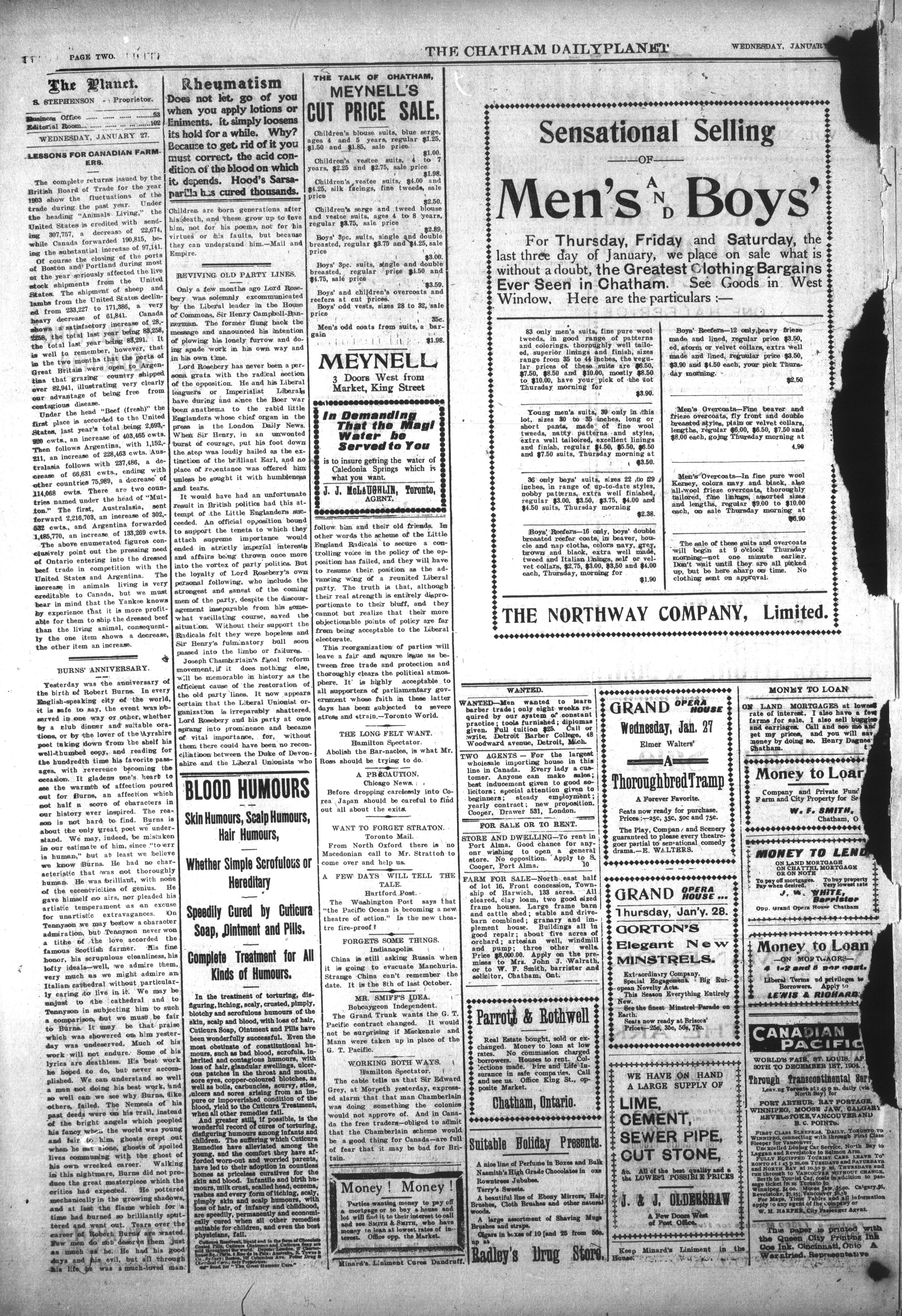- The Chatham Daily Planet : Vol. XIII, No. 25 (January 27, 1904)