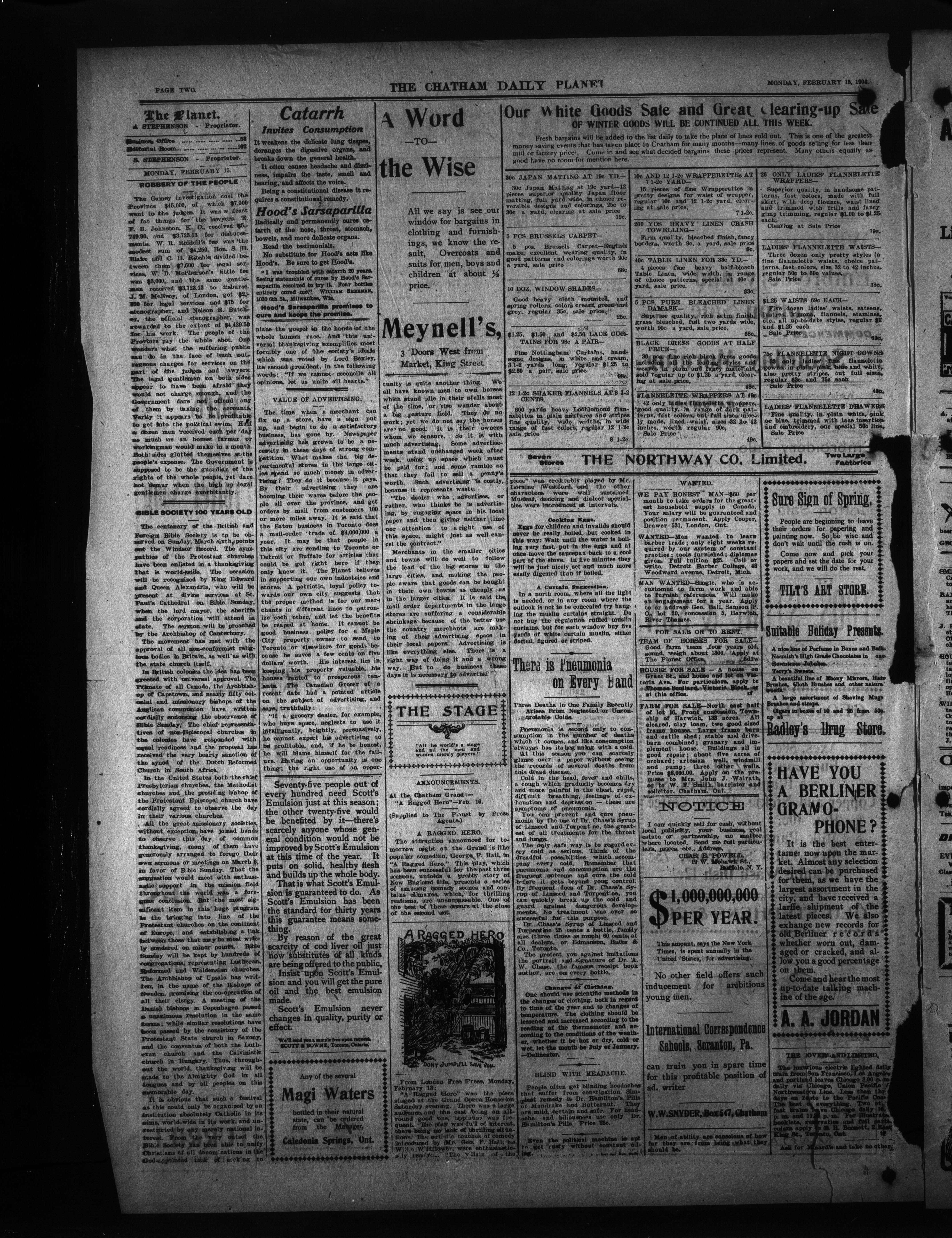 The Chatham Daily Planet. : The Chatham Daily Planet : Vol. XIII, No. 42 (February 15, 1904)