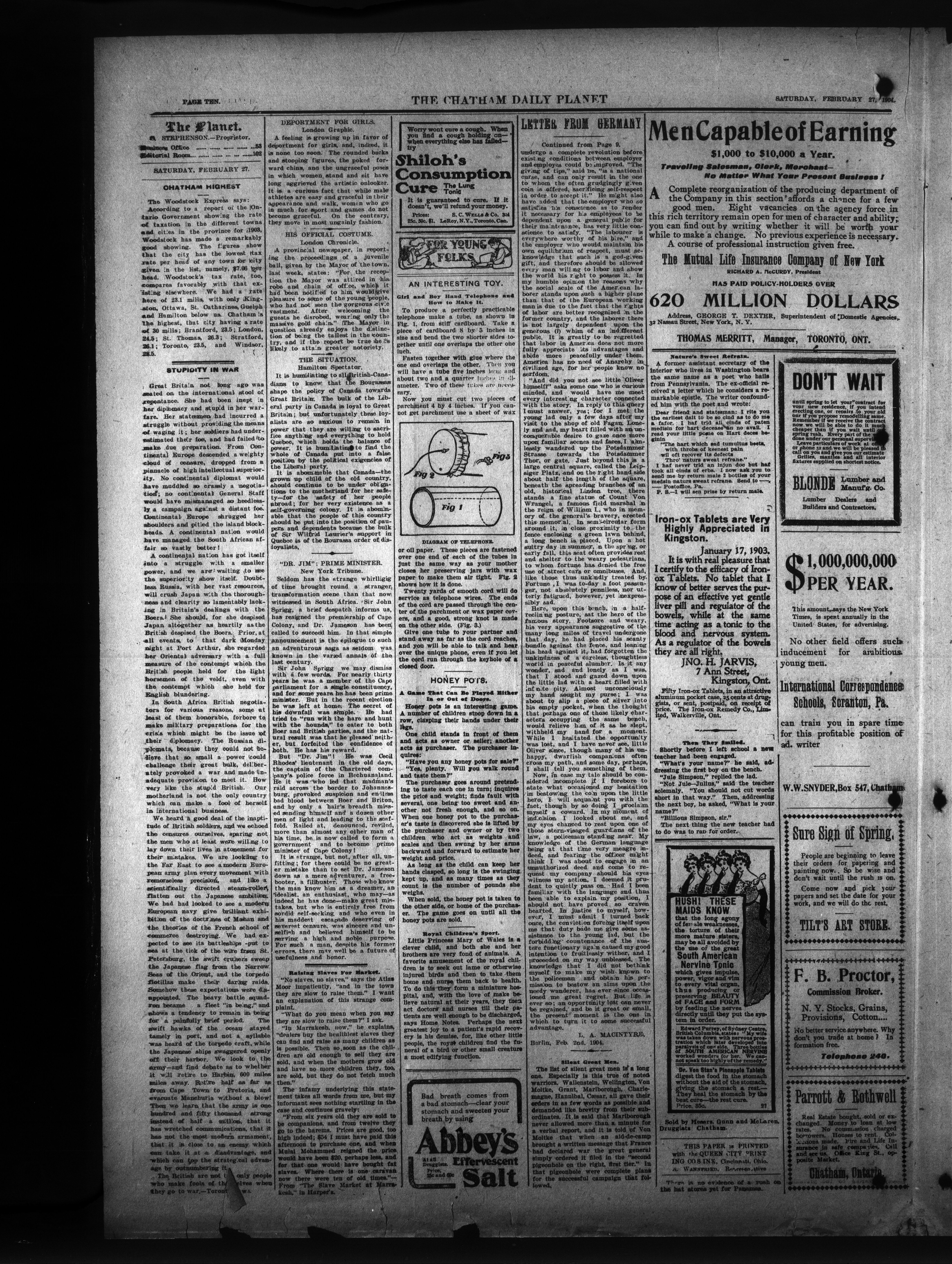 - The Chatham Daily Planet : Vol. XIII, No. 52 (February 27, 1904)