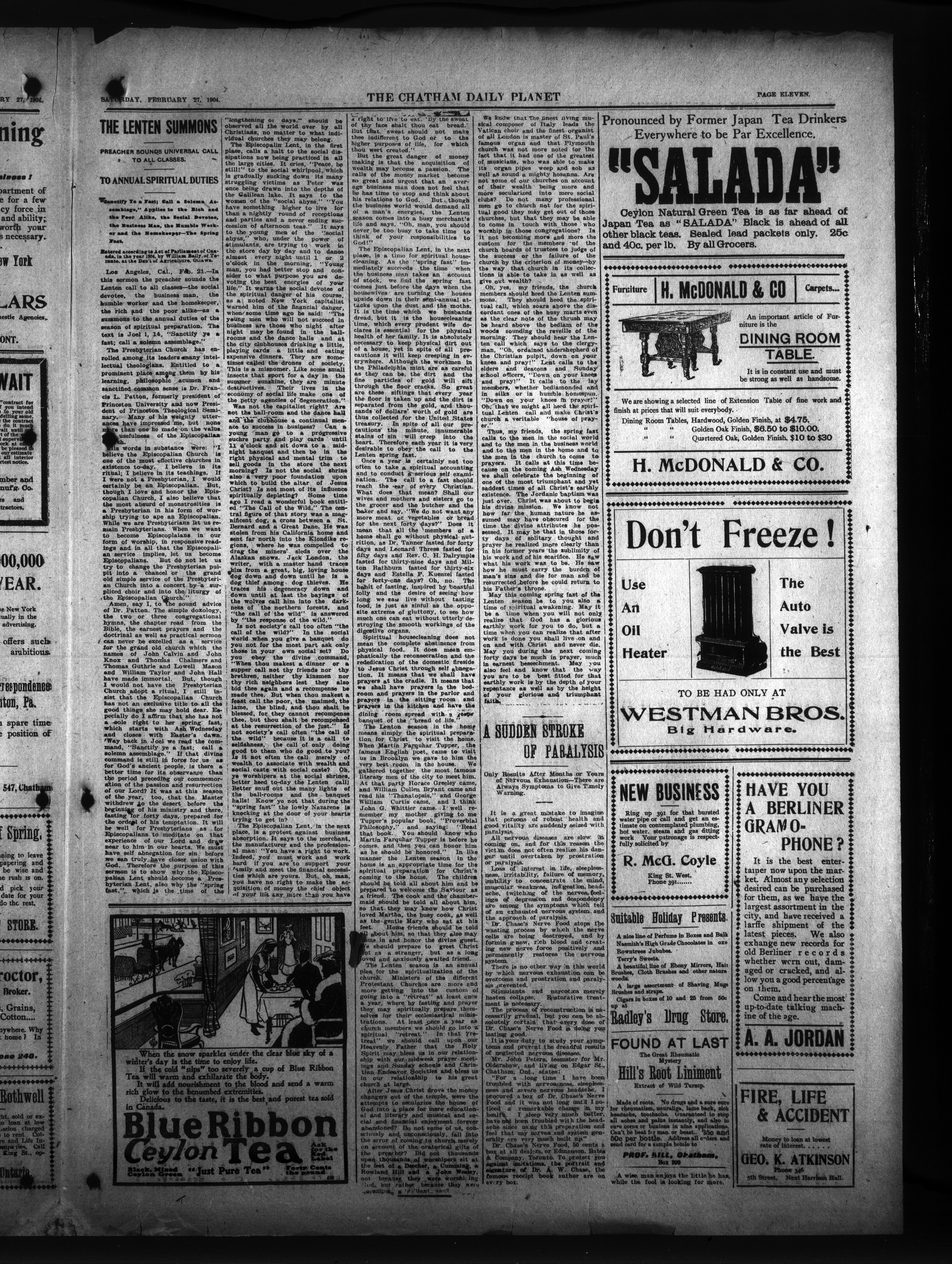 - The Chatham Daily Planet : Vol. XIII, No. 52 (February 27, 1904)