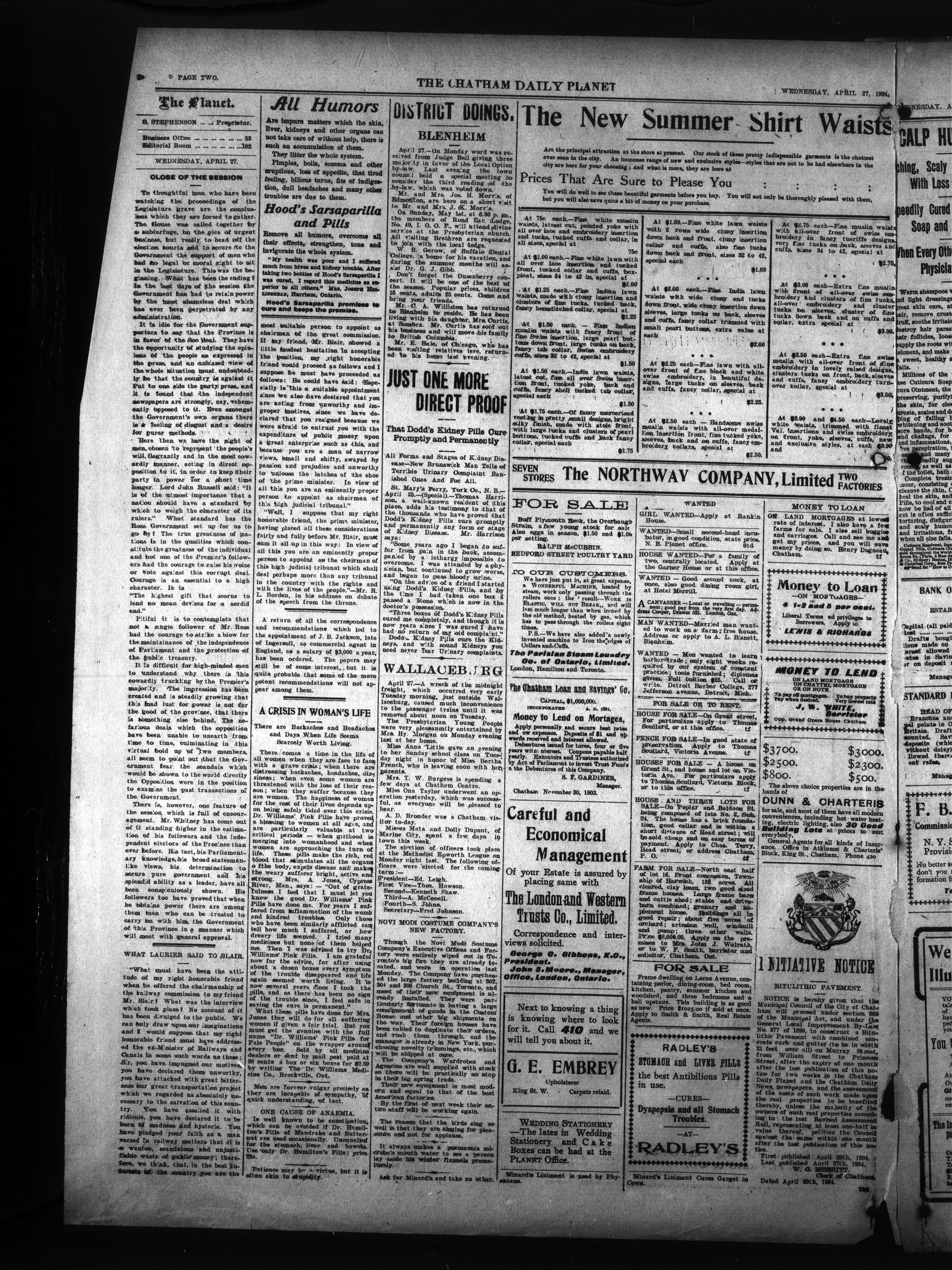 - The Chatham Daily Planet : Vol. XIII, No. 102 (April 27, 1904)