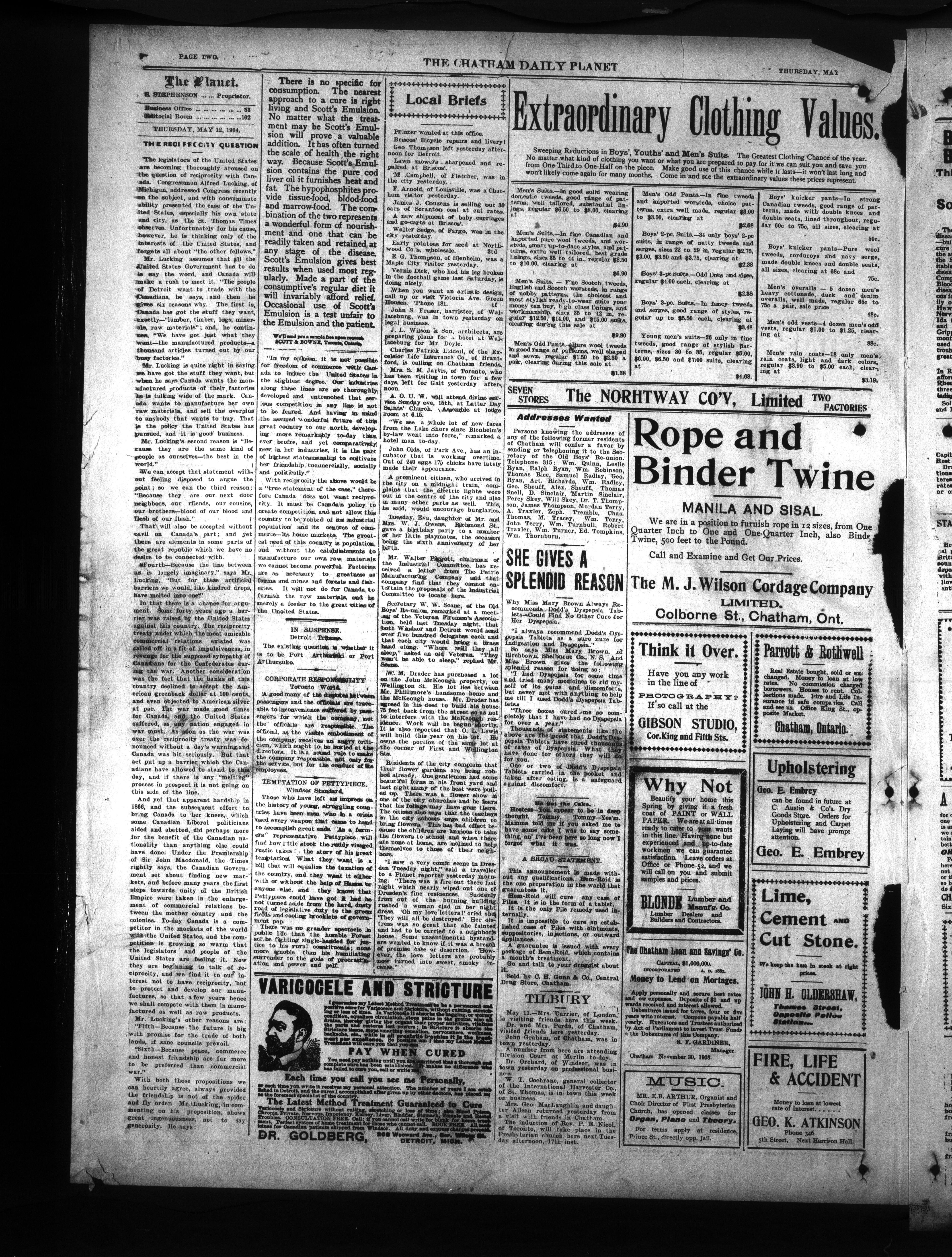 - The Chatham Daily Planet : Vol. XIII, No. 111 (May 12, 1904)