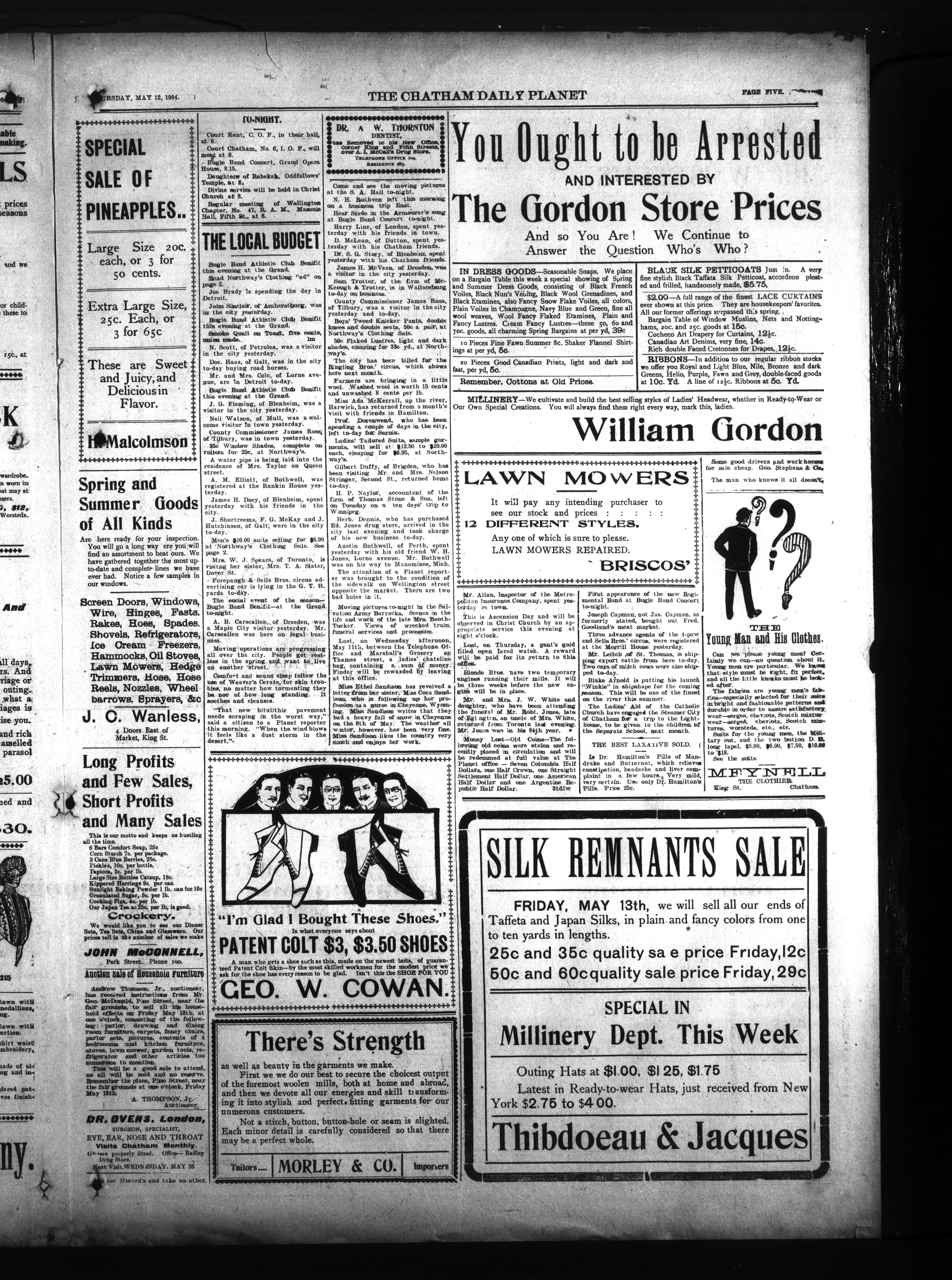 - The Chatham Daily Planet : Vol. XIII, No. 111 (May 12, 1904)