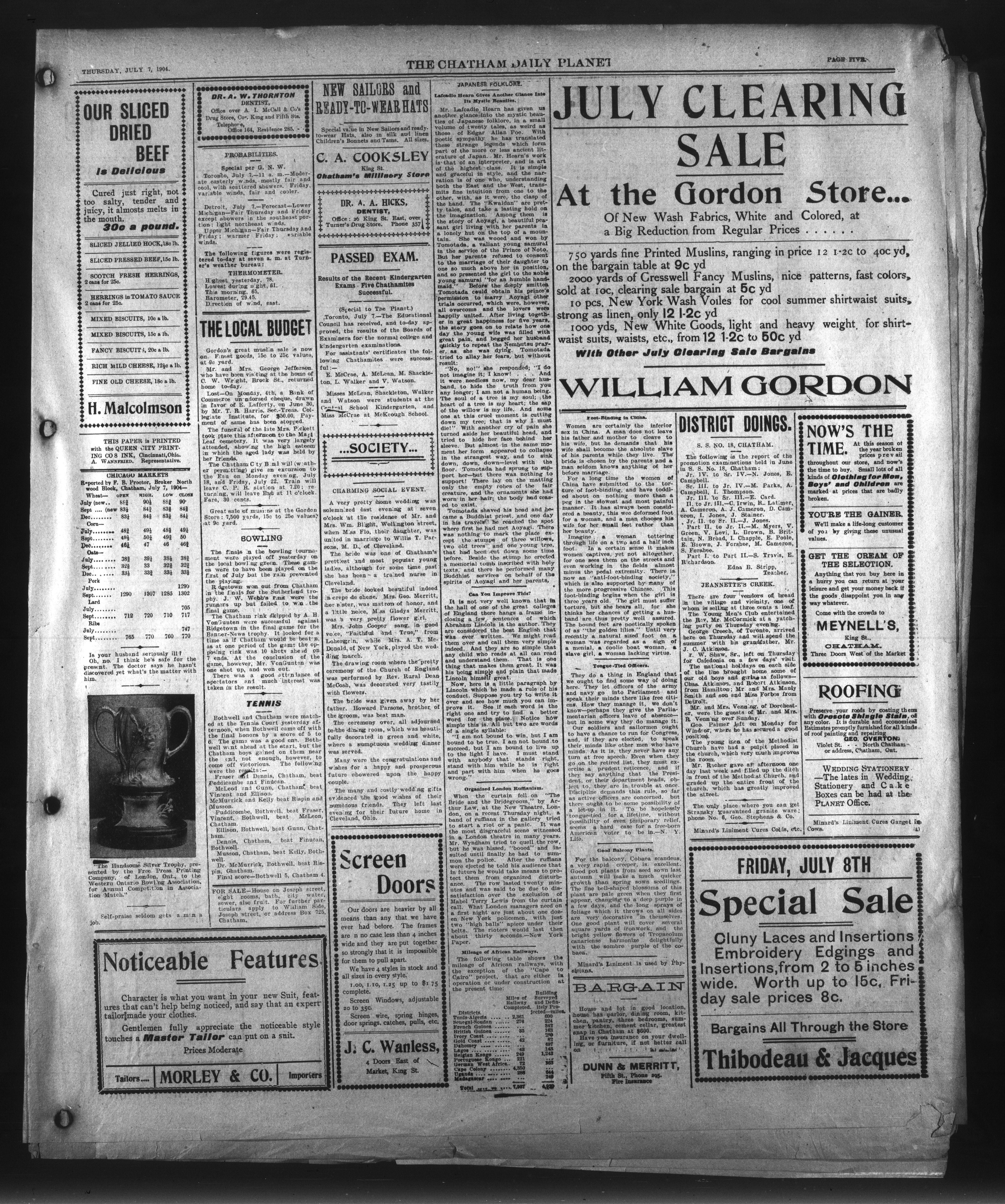 - The Chatham Daily Planet : Vol. XIII, No. 159 (July 7, 1904)