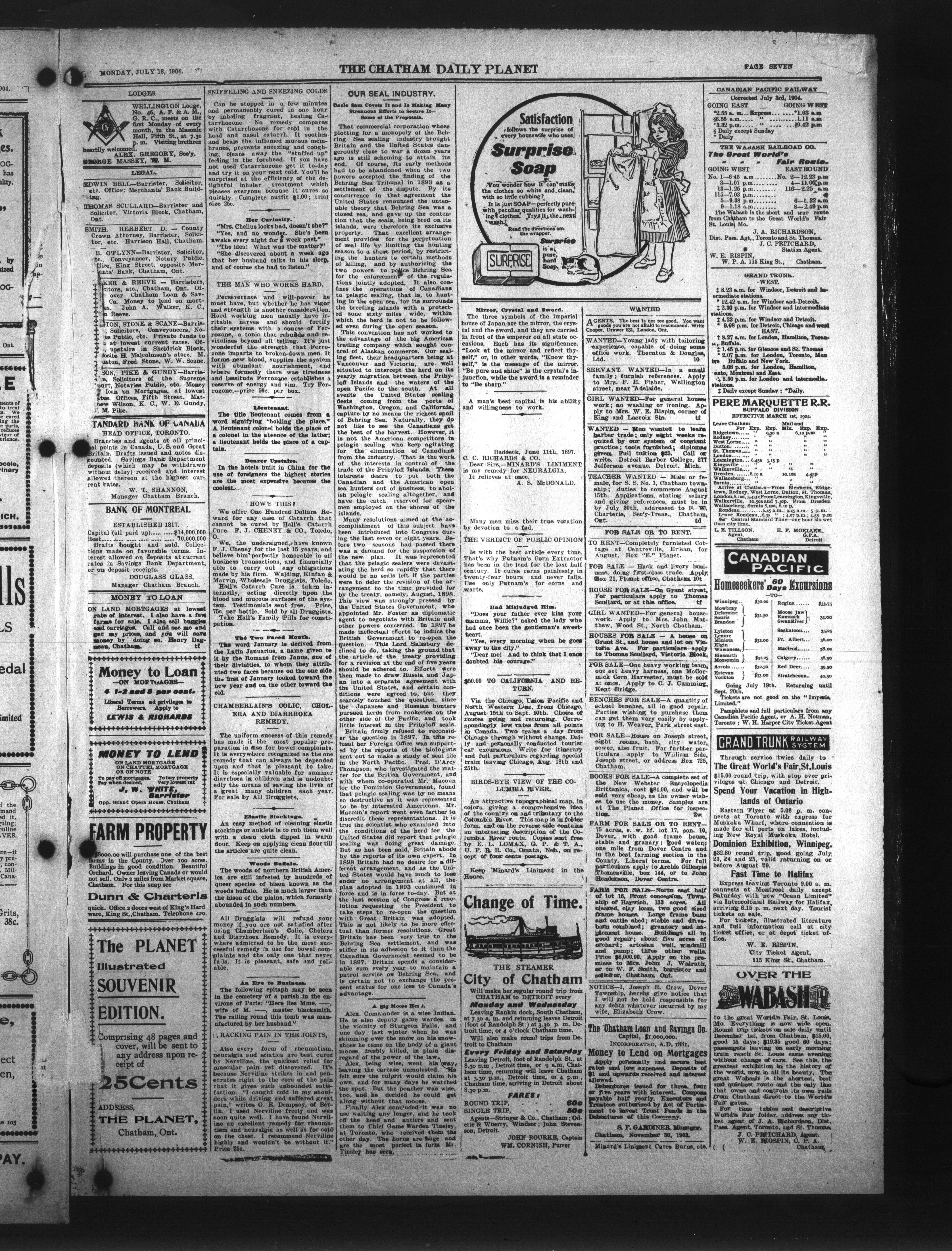 - The Chatham Daily Planet : Vol. XIII, No. 167 (July 18, 1904)