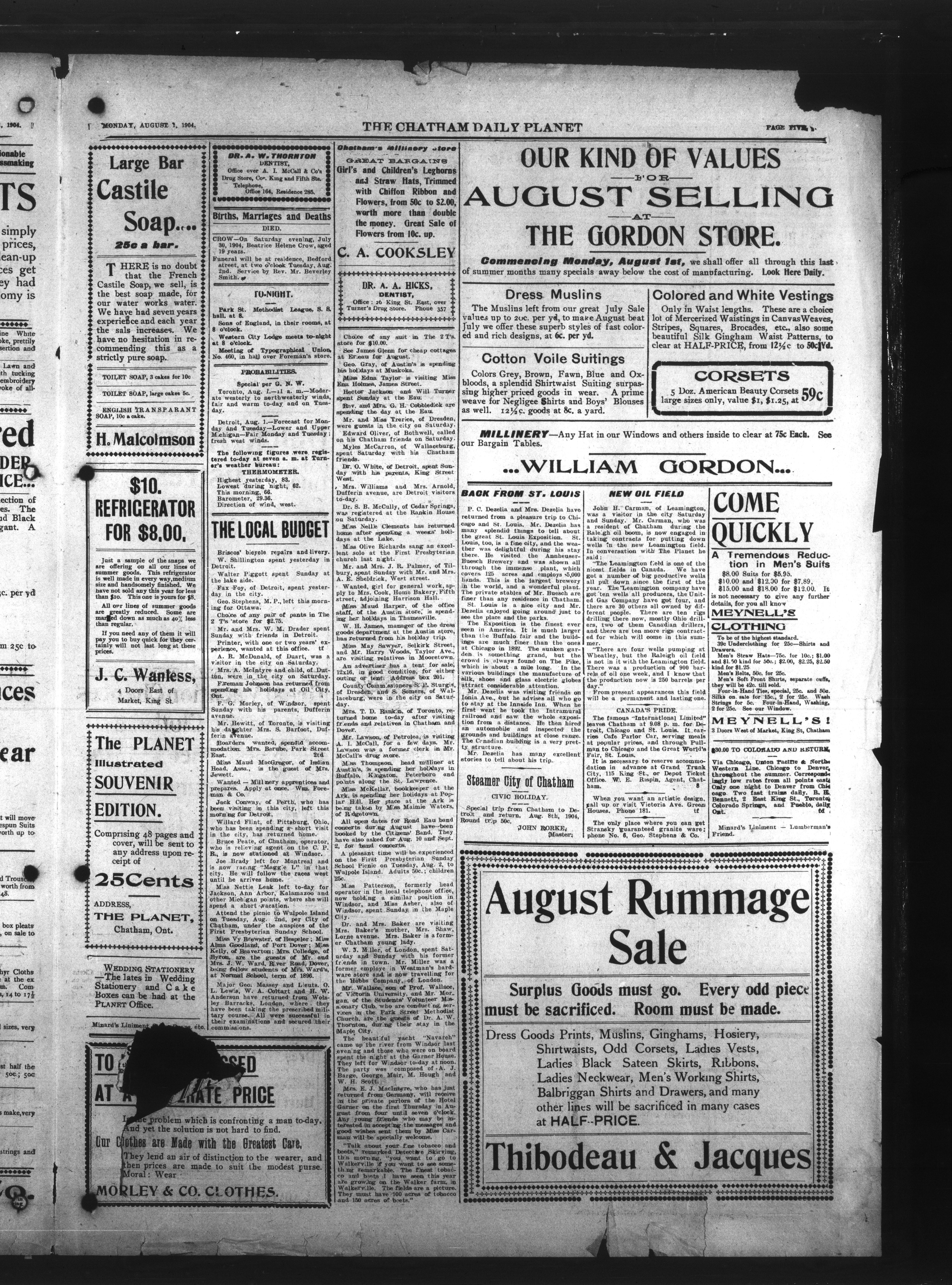 - The Chatham Daily Planet : Vol. XIII, No. 179 (August 1, 1904)