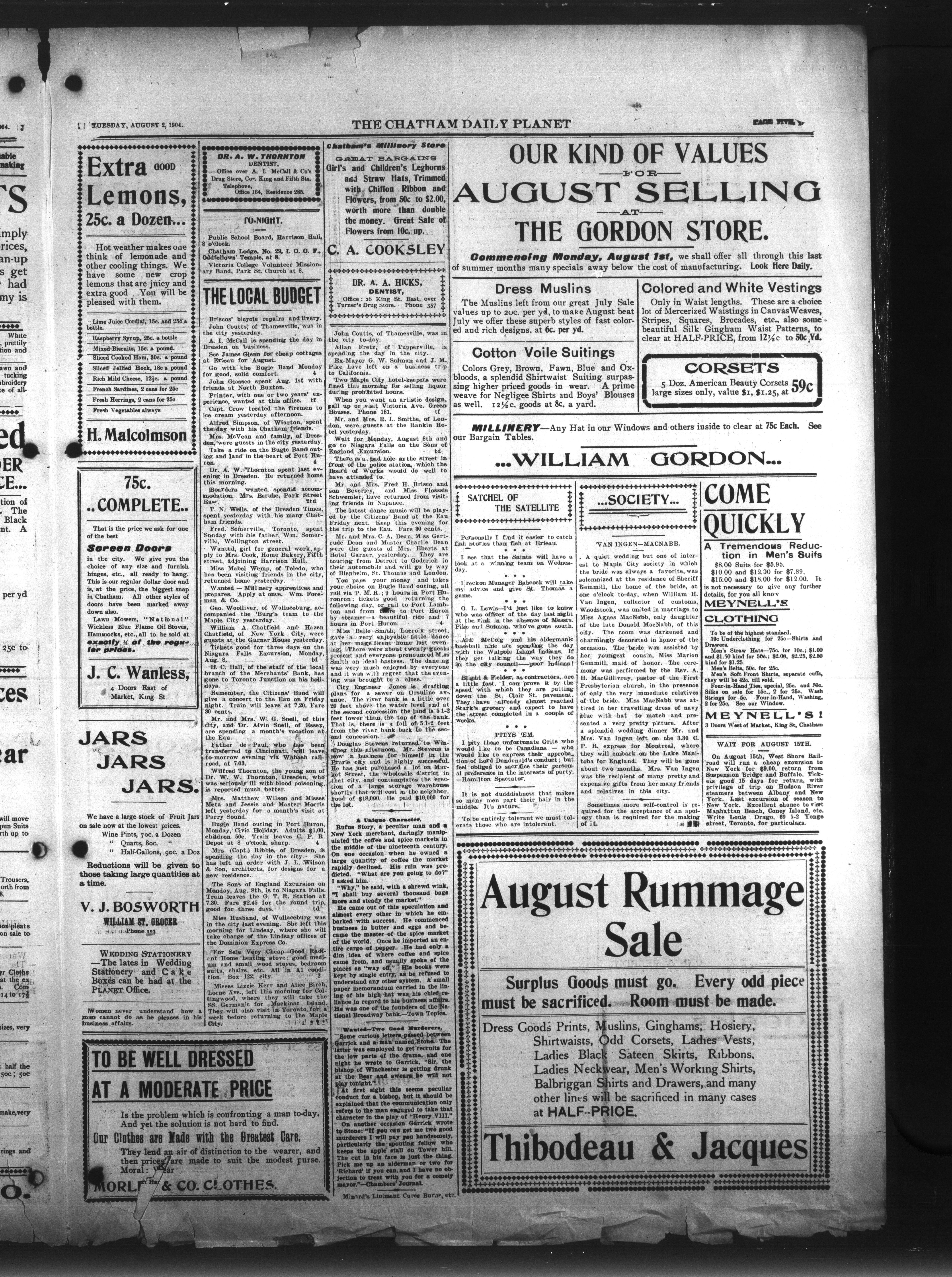- The Chatham Daily Planet : Vol. XIII, No. 180 (August 2, 1904)