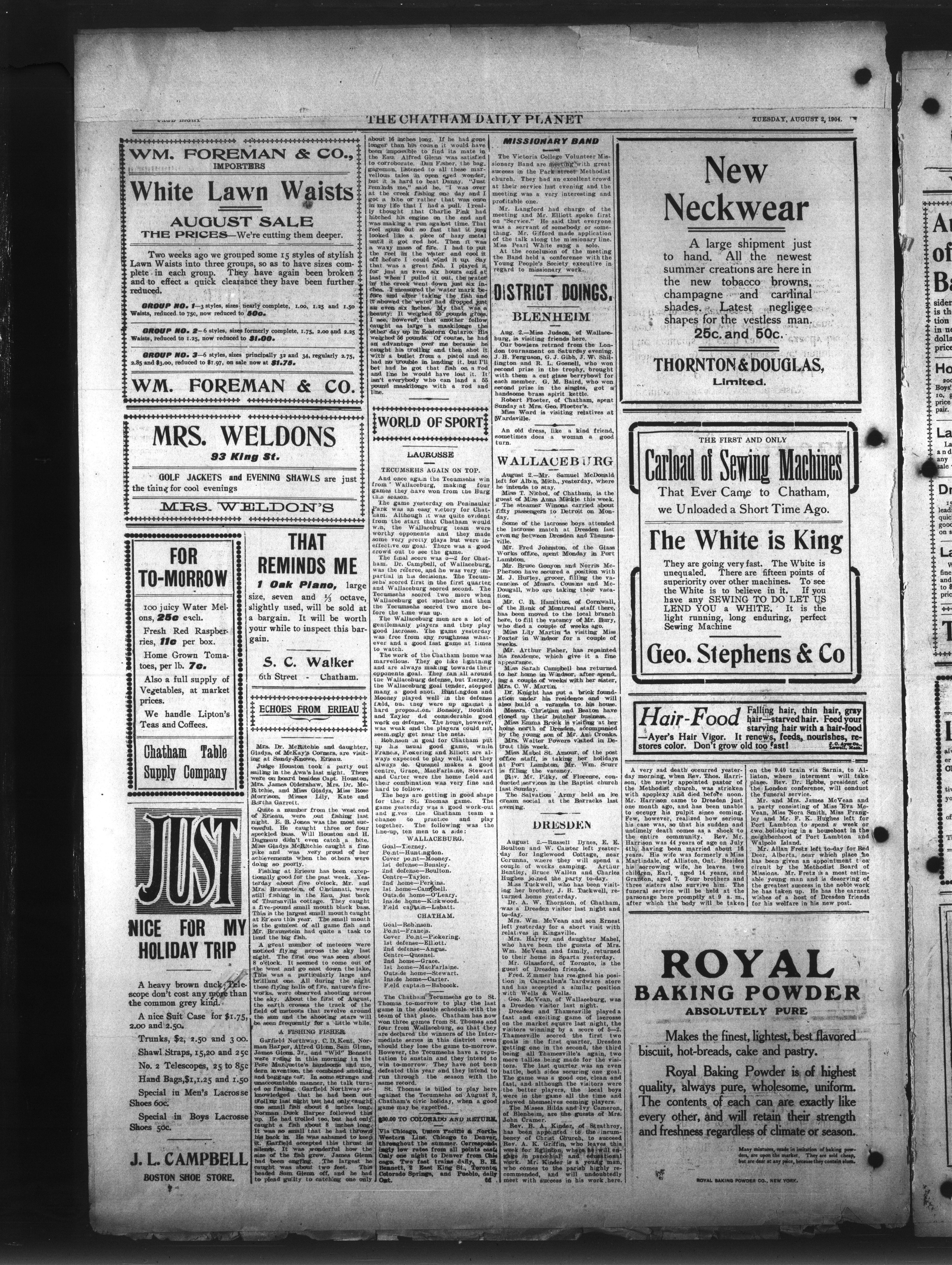 - The Chatham Daily Planet : Vol. XIII, No. 180 (August 2, 1904)