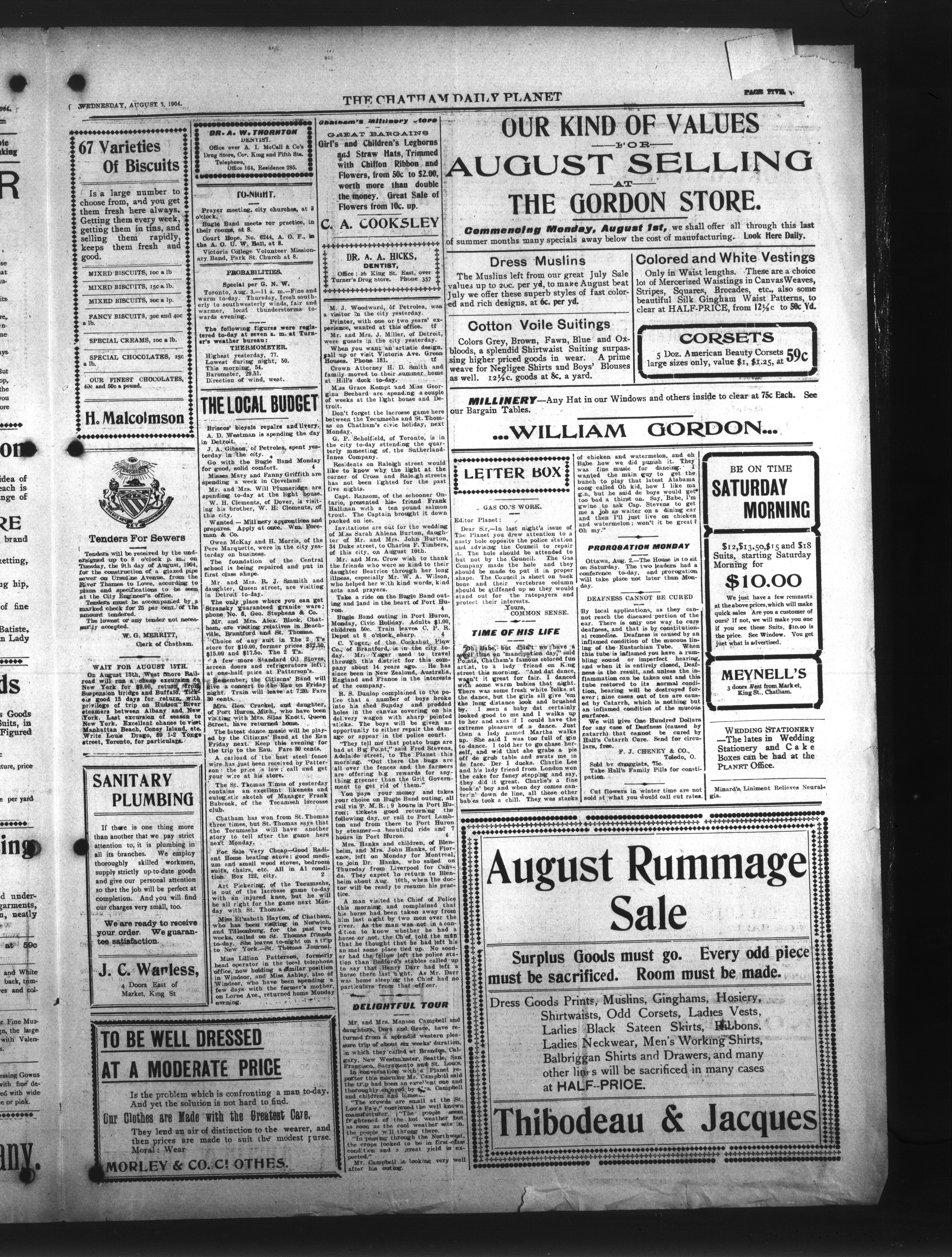 - The Chatham Daily Planet : Vol. XIII (August 3, 1904)