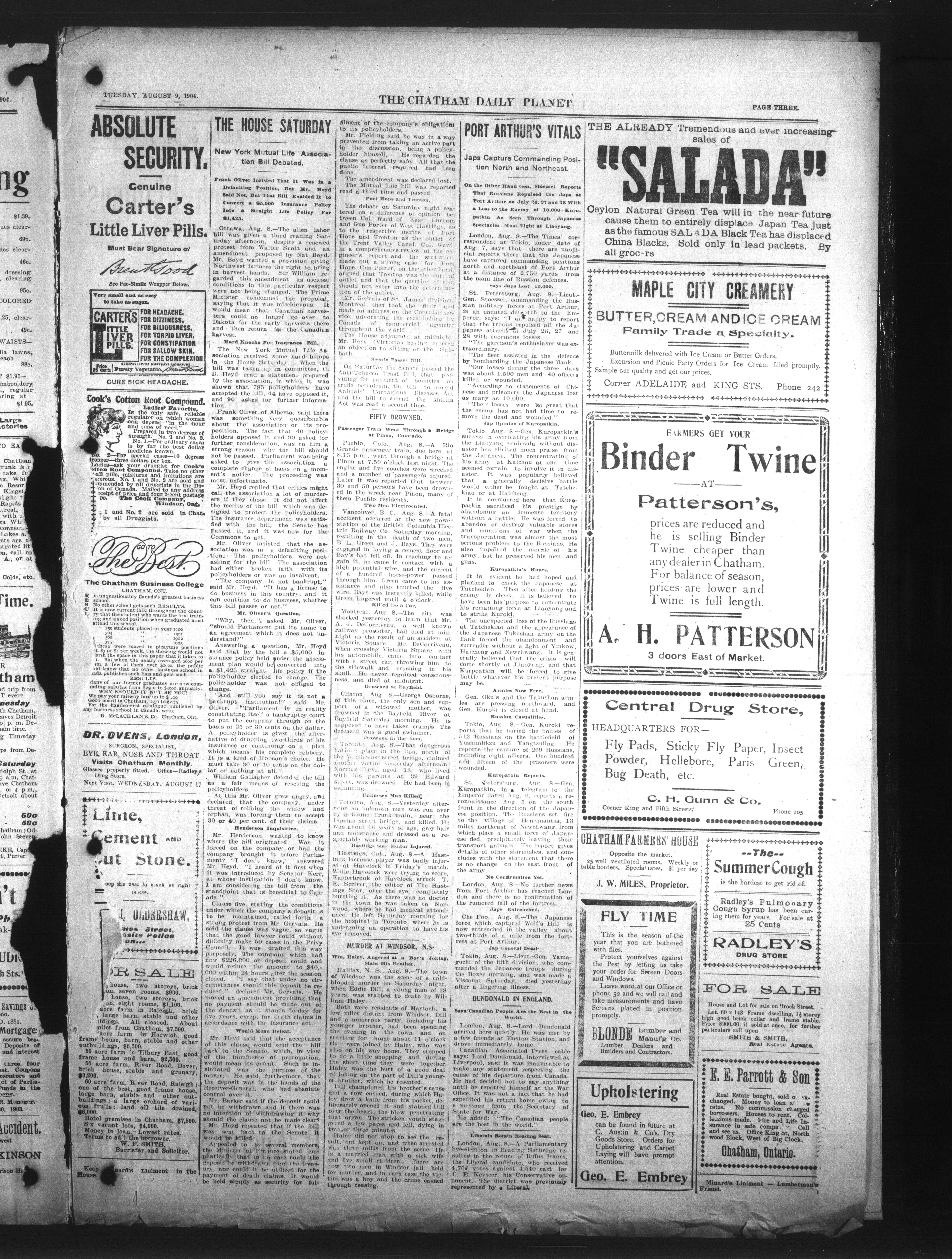 - The Chatham Daily Planet : Vol. XIII, No. 186 (August 9, 1904)