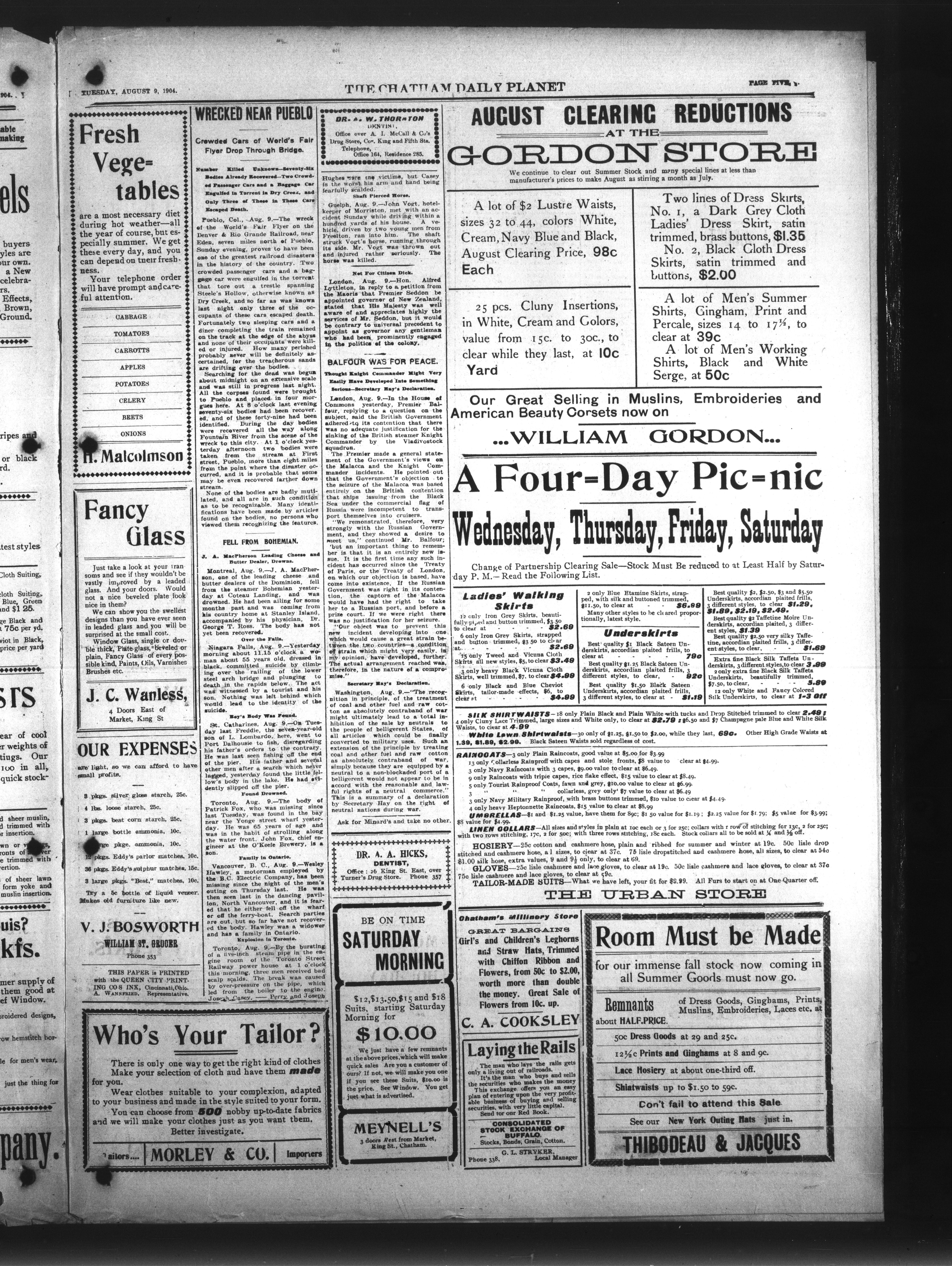 - The Chatham Daily Planet : Vol. XIII, No. 186 (August 9, 1904)