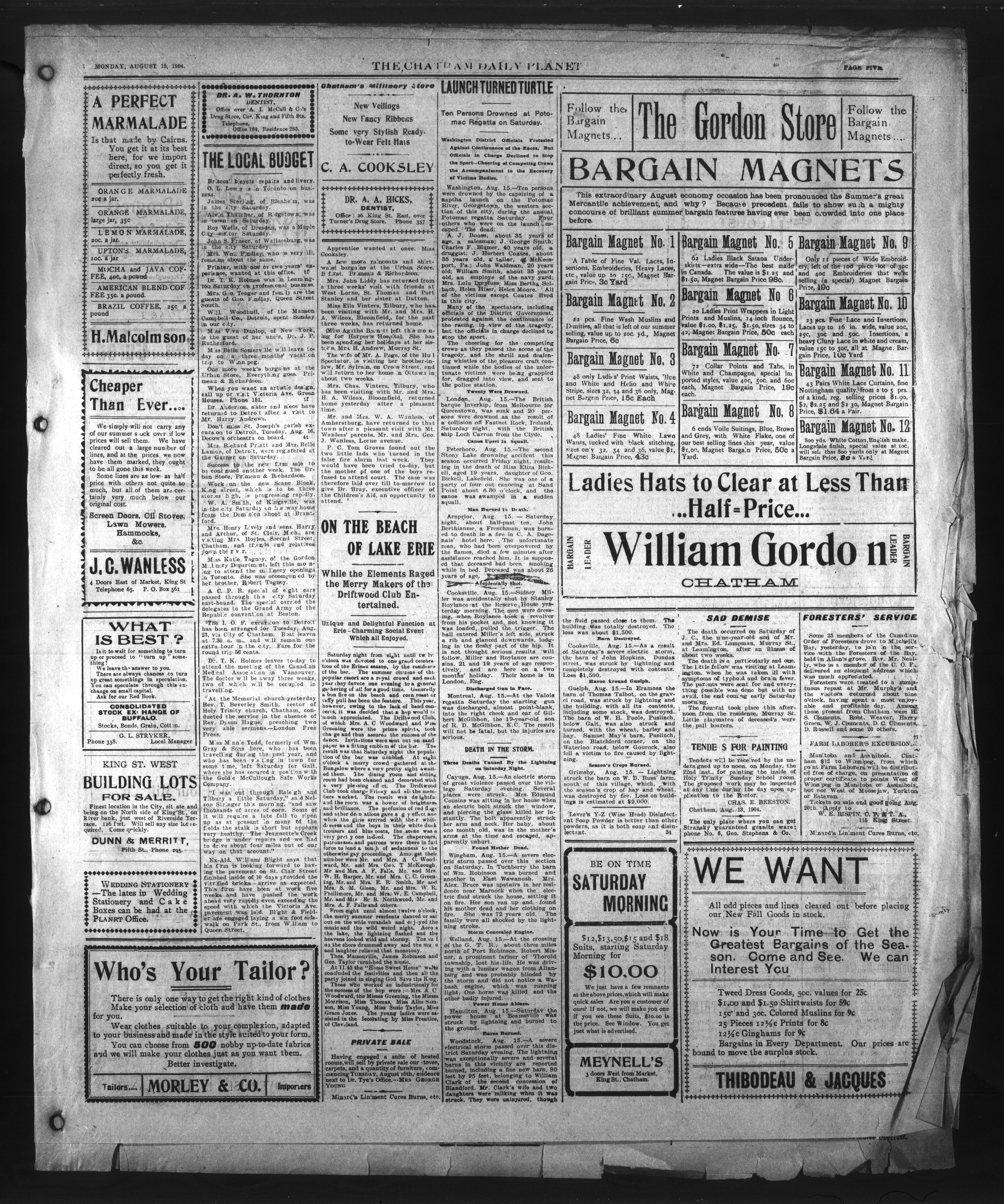 - The Chatham Daily Planet : Vol. XIII, No. 191 (August 15, 1904)