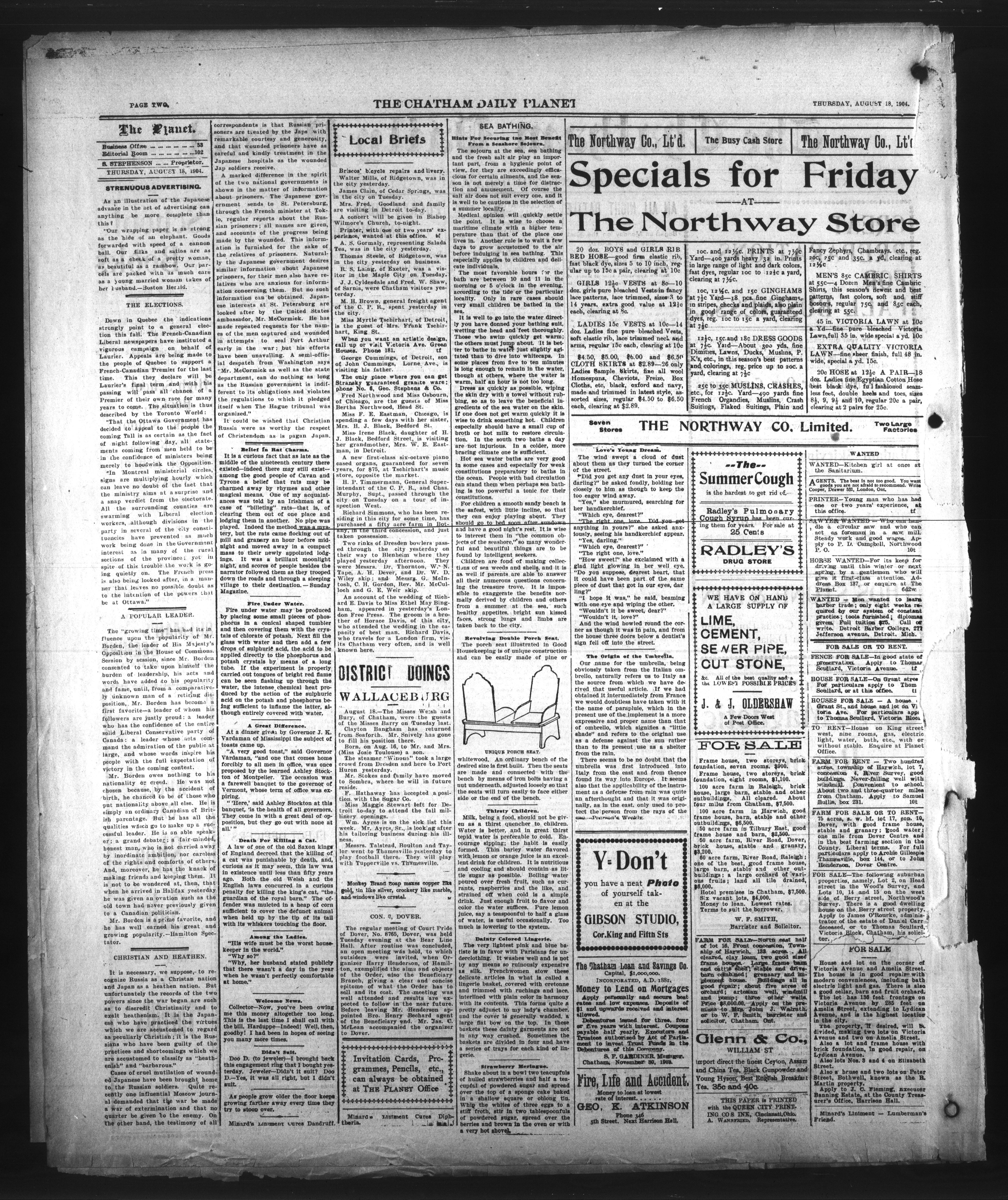 - The Chatham Daily Planet : Vol. XIII, No. 194 (August 18, 1904)