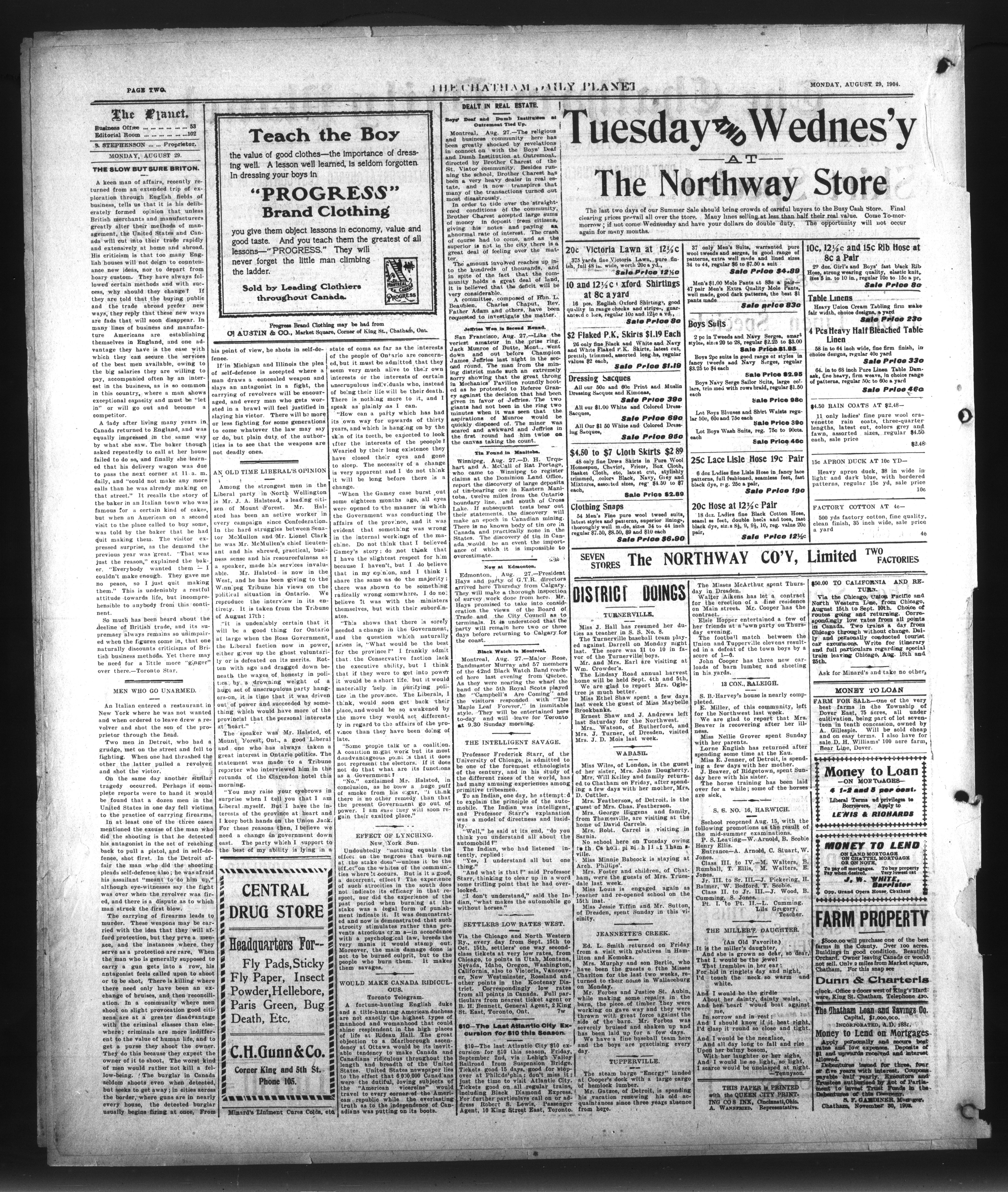 - The Chatham Daily Planet : Vol. XIII, No. 203 (August 29, 1904)