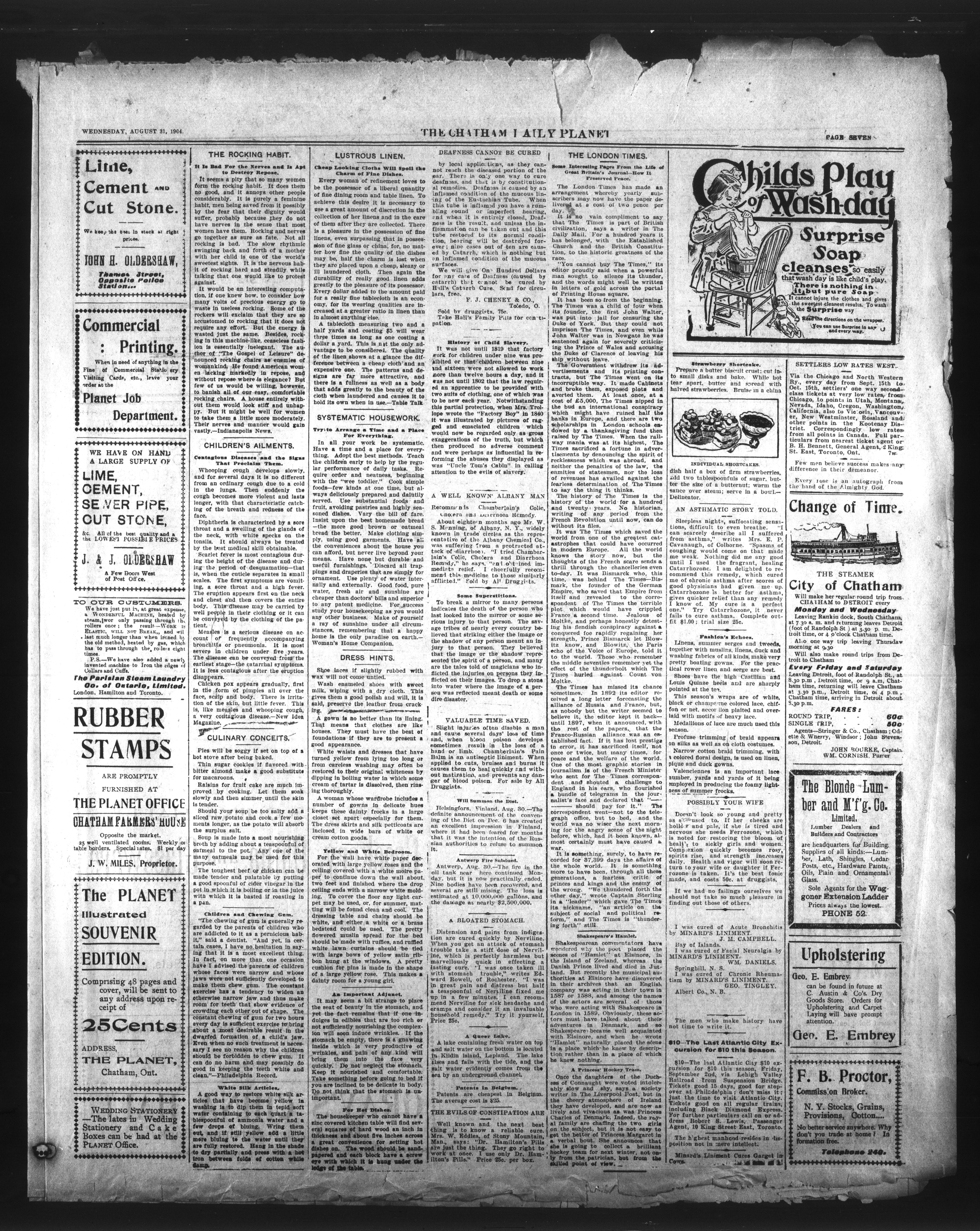 - The Chatham Daily Planet : Vol. XIII, No. 205 (August 31, 1904)