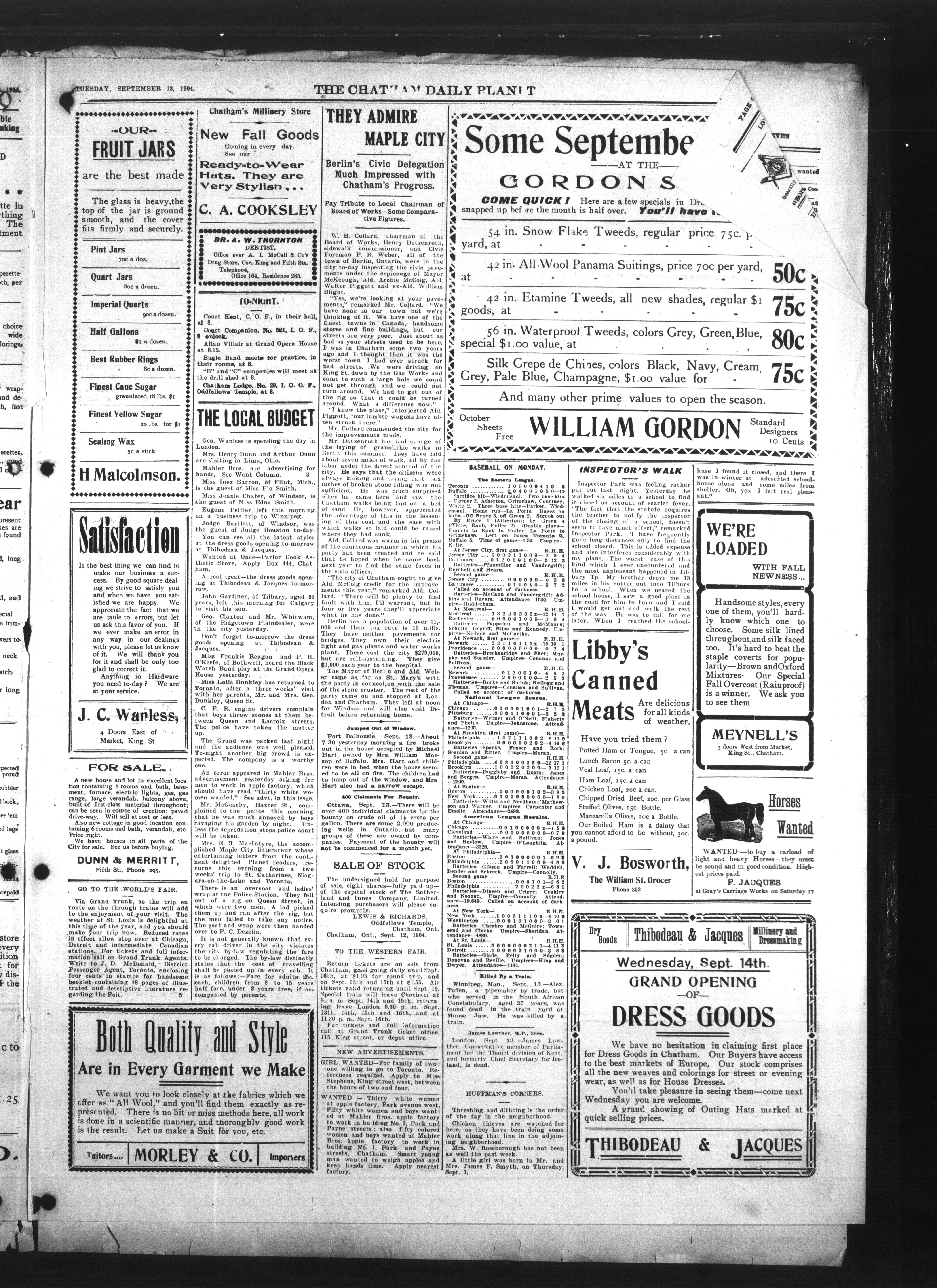 - The Chatham Daily Planet : Vol. XIII, No. 216 (September 13, 1904)